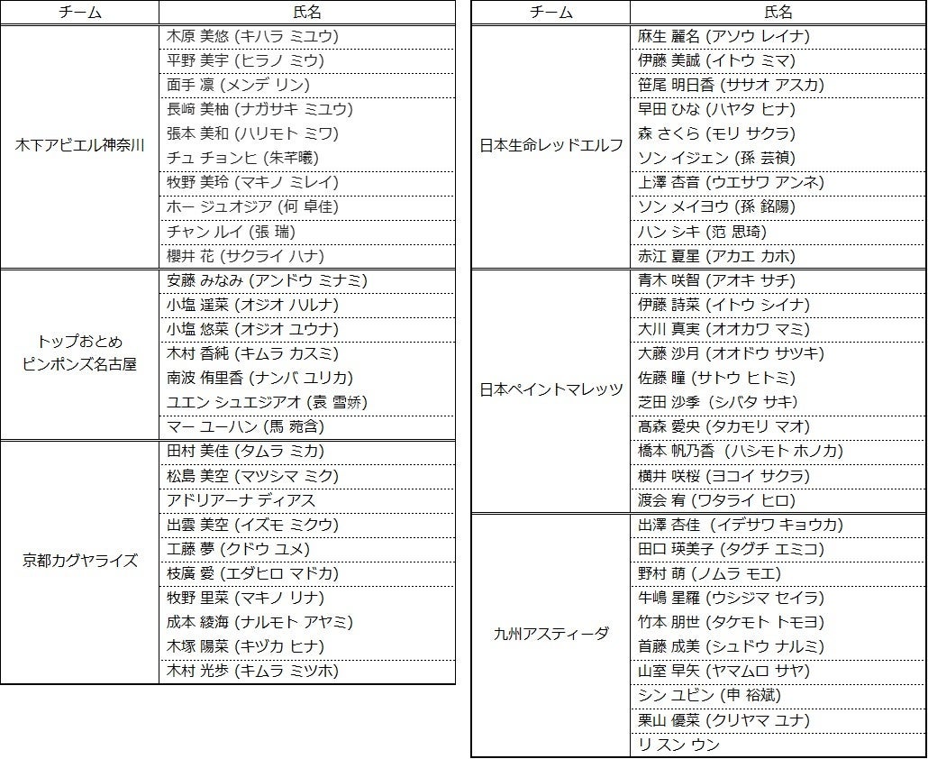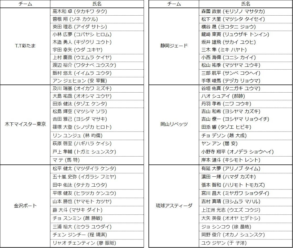 Tリーグでは、2023-2024シーズン 登録完了選手を以下の通りお知らせいたします。