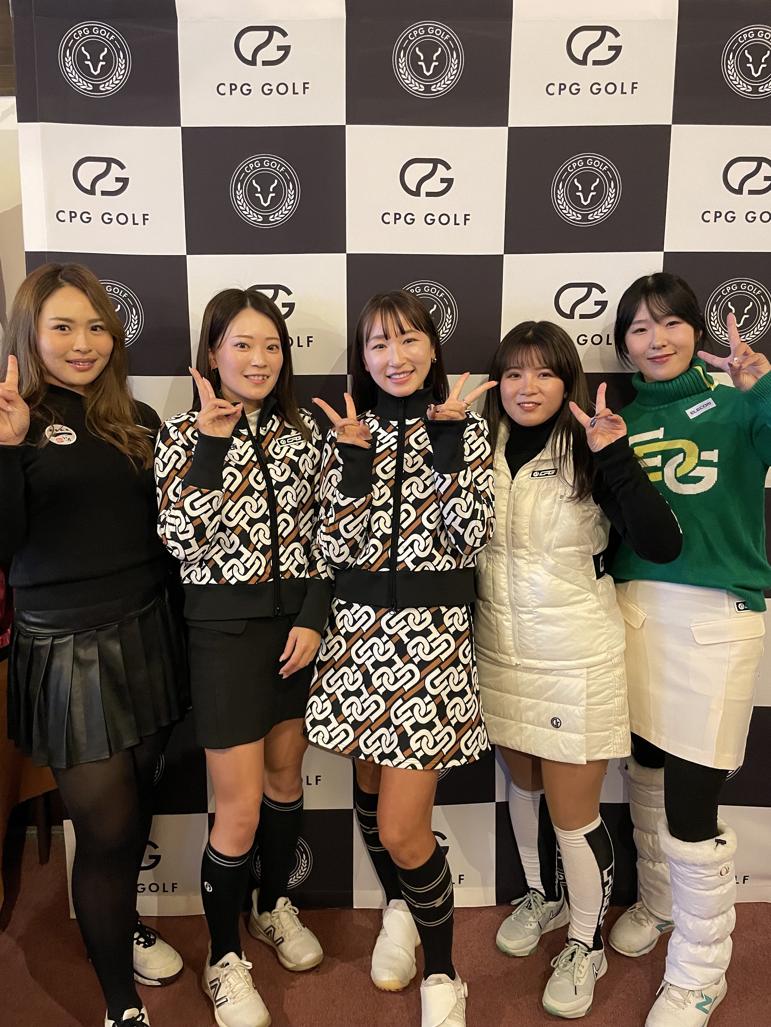 ゲストプロとしてCPG GOLFブランドとウェア契約を結ぶ吉本ひかるプロ、高木萌衣プロ、井上梨花プロ、夫馬菜月プロ、上野陽向プロが集結。