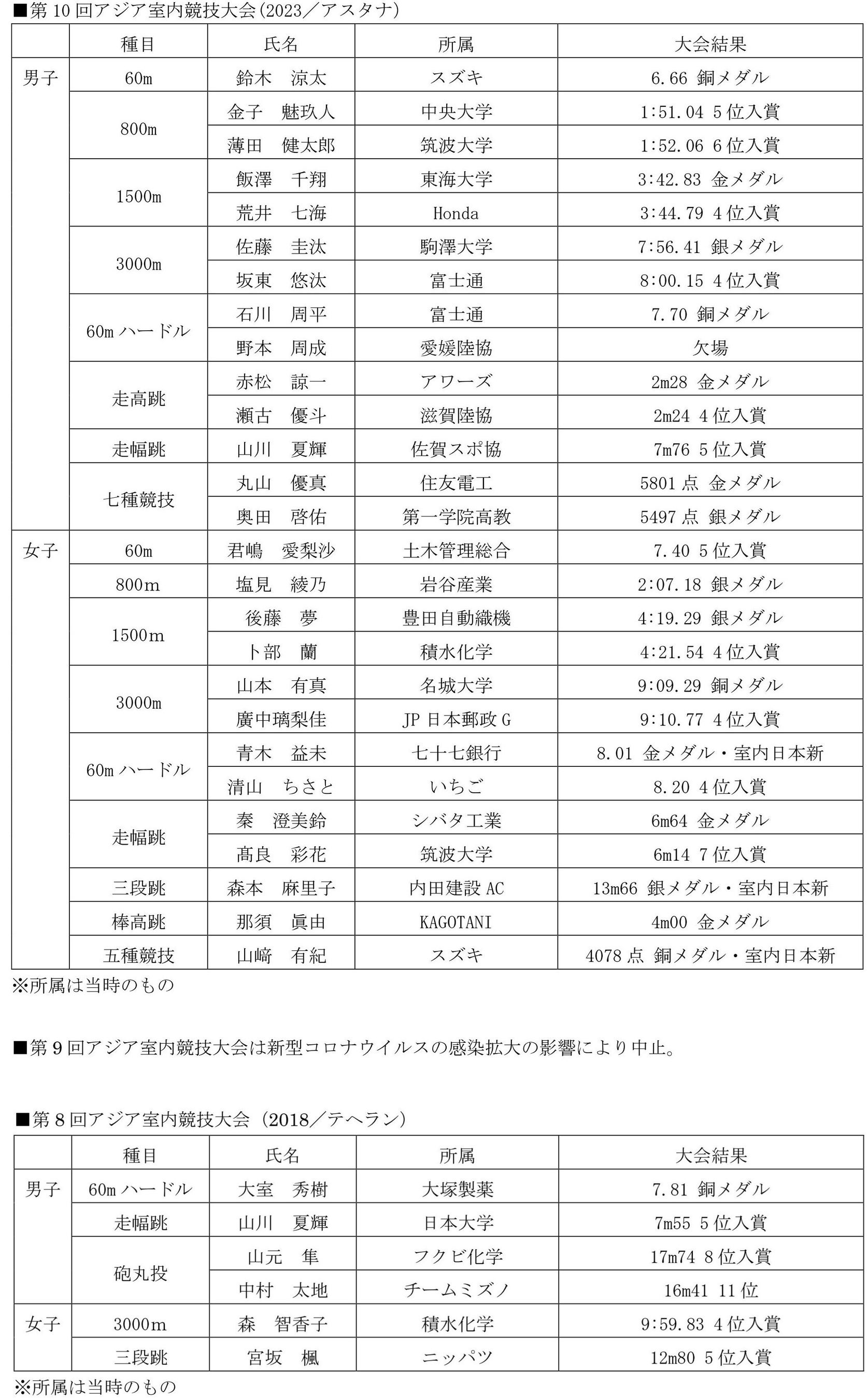 ▼テヘラン2024アジア室内陸上競技選手権大会 日本代表選考要項