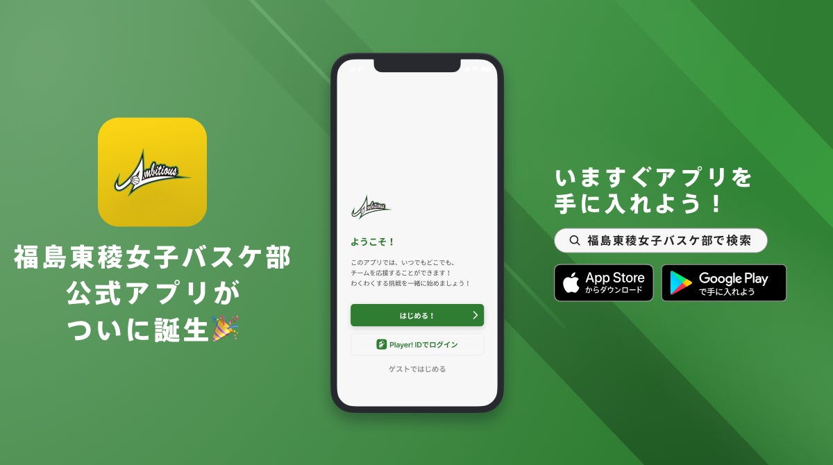 私たちは、「応援されるチーム」「見ている人から『ありがとう』と言われるチーム」を目指し、様々なチャレンジを通して、多くの方々に喜びを届けたいと考えています。様々な情報を公式アプリから発信することで、多くのOG、保護者、ファンの皆様を身近に感じながら、また、アプリを通じて気軽に交流を図りながら喜びを分かち合いたいとの想いから、今回の導入に至りました。公式アプリを通して世代を超えた触れ合いの輪を広げ、いつまでも福島東稜高校女子バスケットボール部ambitiousを楽しんでもらいたいと思います。