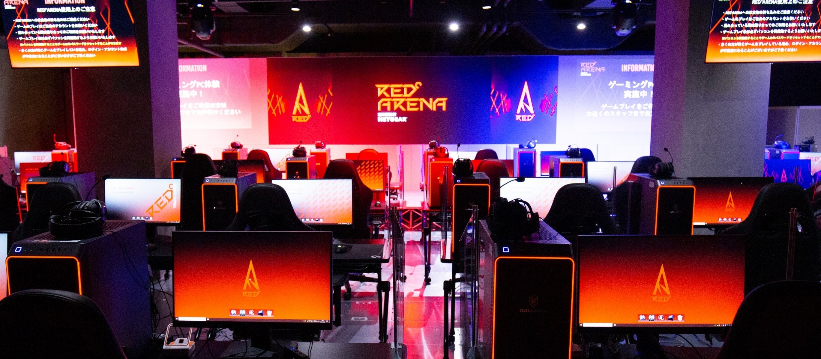 RED°TOKYO TOWER 5Fにある 「NETGEAR RED° ARENA」 では、esports施設として、オンライン大会でも遅延なく競技に集中できる高速ネット回線、高性能ゲーミングPCを32台常備し、esports大会の開催やイベント会場としての運営が行われております。
