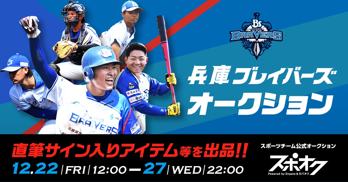 株式会社モバオク(本社:東京都渋谷区、代表取締役社長:生田目 知之、以下モバオク)とエンゲート株式会社(本社:東京都中央区、代表取締役:城⼾ 幸⼀郎、以下エンゲート)が協働し提供するスポーツチーム公式オークションサービス「スポオク」は、プロ野球独立リーグ・さわかみ関西独立リーグに所属の兵庫ブレイバーズを運営する株式会社ヒーロー・インタヴュー(以下、兵庫ブレイバーズ)が実施する「兵庫ブレイバーズ 2023年シーズン サンクスオークション」を2023年12月22日(金)から開始します。
