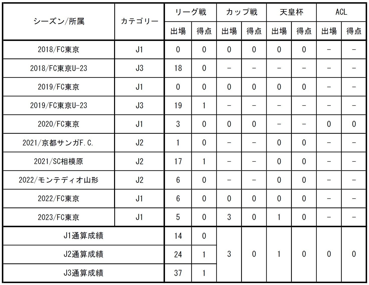 □出場記録(2023シーズン終了時点)