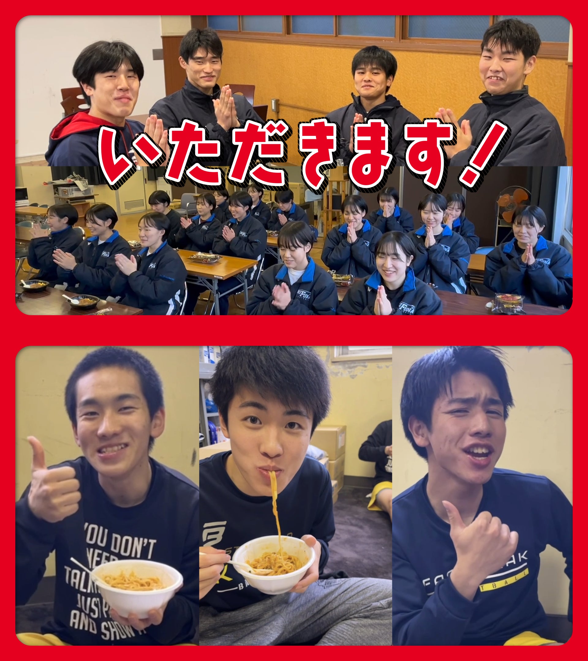 日清食品とジャパネットが共同開発した商品『冷凍 完全メシ 三ツ星シリーズ』を出場校男女全120校にプレゼントし、部員みんなで食べている様子を1本のムービーに。これをX(旧Twitter)やテレビで紹介します。一緒に食事を囲む様子を記録に残すことで、チームでウインターカップに向き合った思い出のひとつになるようなムービー制作プロジェクトを実施します。
