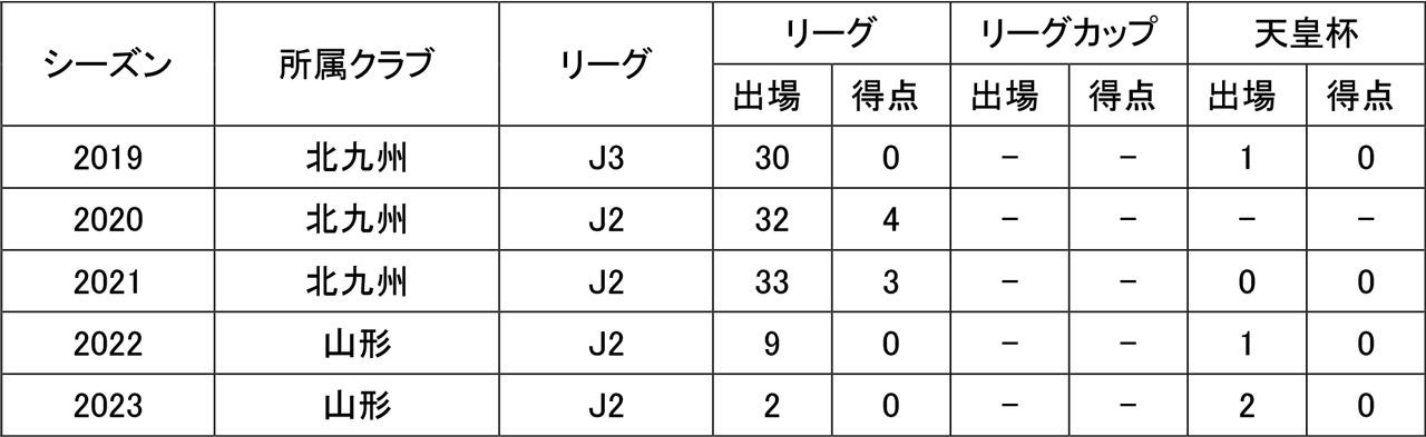 経歴/小禄中 – 流通経済大付属柏高 – 流通経済大 – ギラヴァンツ北九州 – モンテディオ山形