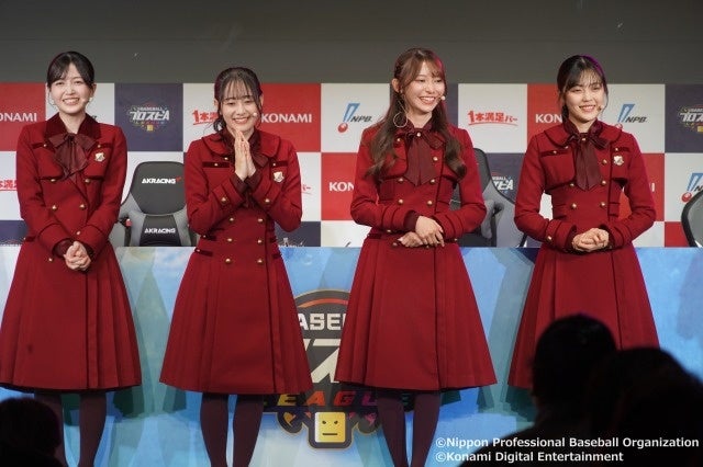 なお、e日本シリーズ前には、スペシャルサポーターを務める乃木坂野球部の久保史緒里さん、向井葉月さん、黒見明香さん、柴田柚菜さんの4名が『プロスピA』の「エキシビションマッチ」を開催。総当たりで行われ、黒見さんが3戦全勝。その後の「特別エキシビションマッチ」では、黒見さんがプロ野球OBの里崎智也さんと対戦し、大会を盛り上げました。