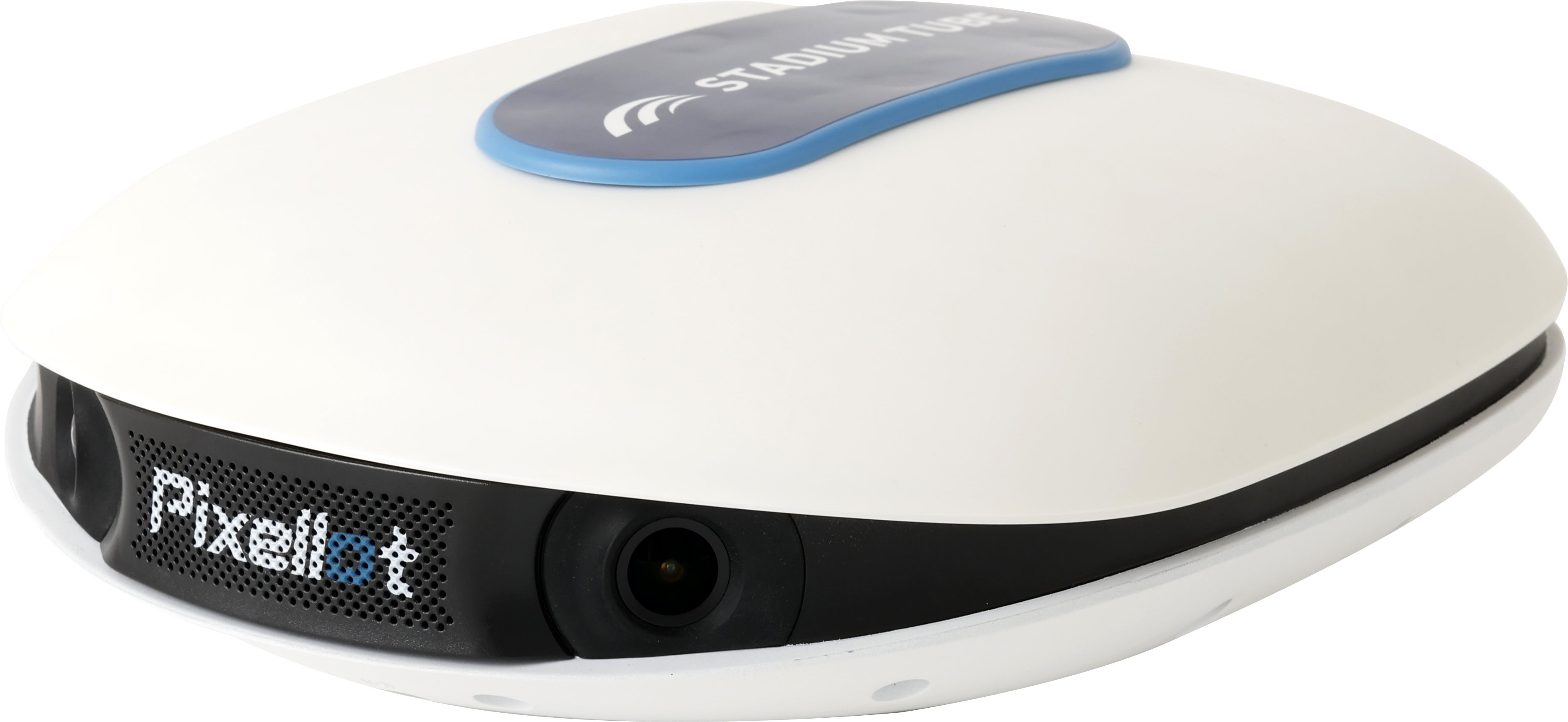 NTTSportictが提供するAIスポーツ映像ソリューション「STADIUM TUBE」 の中⼼となるのは、Pixellot Ltd.(本社:イスラエル)が開発した無⼈撮影カメラで、AIによる⾃動撮影や編集機能を備えています。