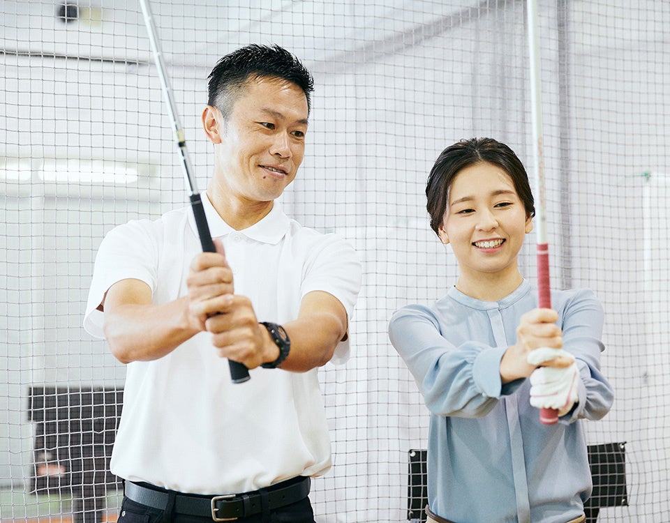 都市型ゴルファーのライフスタイルに合わせ、オールシーズン快適な室内で、お好きな時にゴルフのレッスンが楽しめます。道具(ゴルフクラブ・ゴルフシューズ)は無料レンタルしているので、仕事帰りでも手ぶらでOK。全打席に弾道測定機とスイング解析機も完備しております。