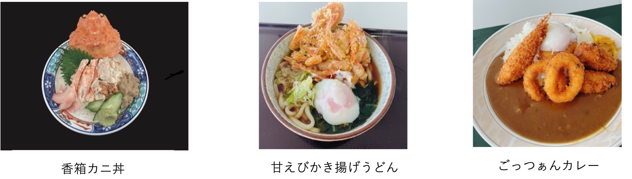 「寒ブリ丼」や「ズワイガニカレー」、「甘えびかき揚げうどん」などの日本海の食材をふんだんに使ったメニューのほか、これまで複数の関取を輩出し、相撲部が有名な海洋高校が開発した「ごっつぁんカレー」「ごっつぁんラーメン」など、特色あるフードがゲレンデ内のレストランでお楽しみいただけるようになります。