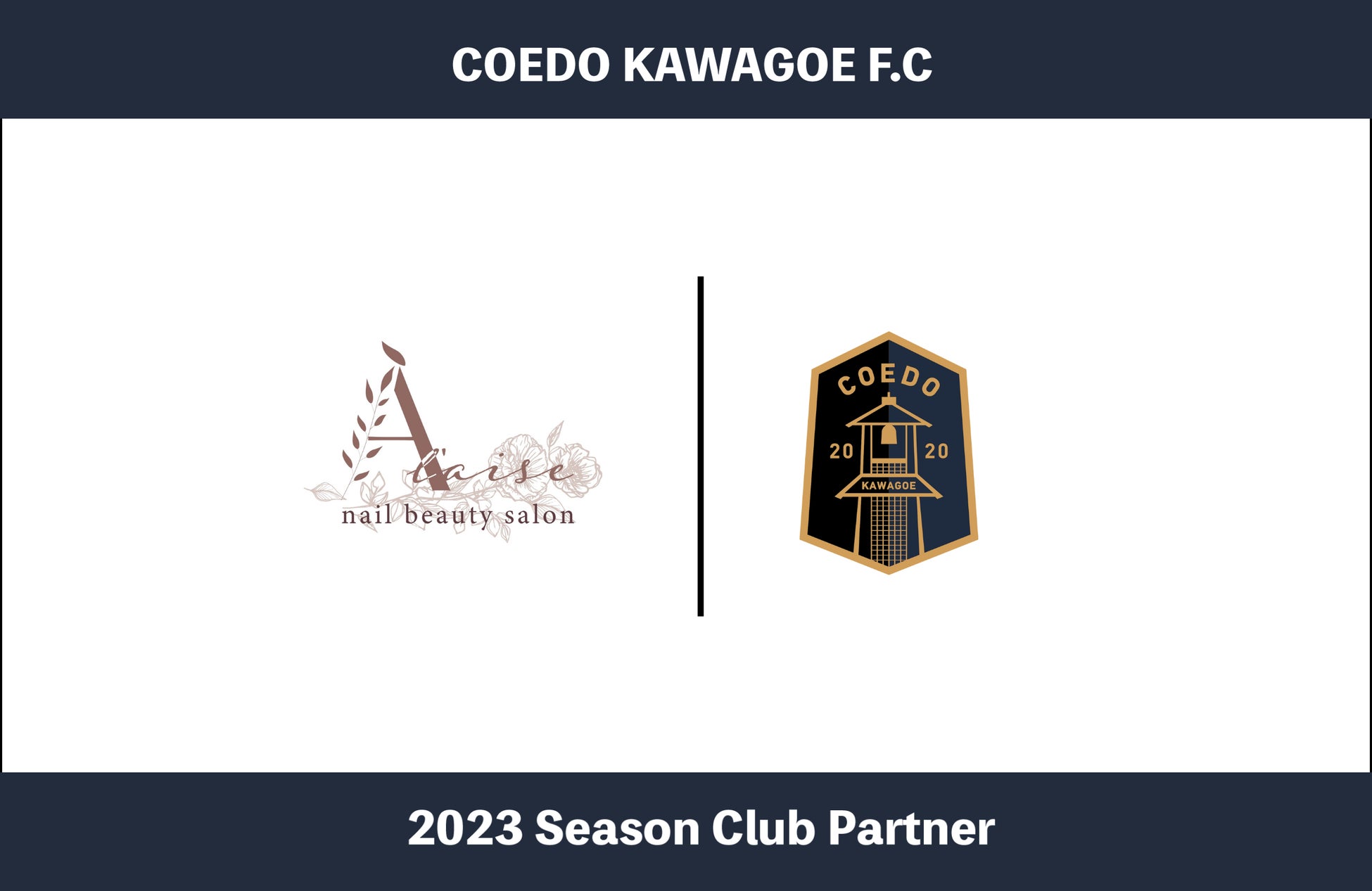 COEDO KAWAGOE F.Cを運営するCOEDO KAWAGOE F.C株式会社(埼玉県川越市、代表取締役 有田和生)は、川越市中原町のネイルサロン「A’l’aise nail beauty salon(ア`レイズ ネイル ビューティー サロン)」(埼玉県川越市、代表 安川有美)と2023シーズンのクラブパートナー契約を締結したことを発表いたします。