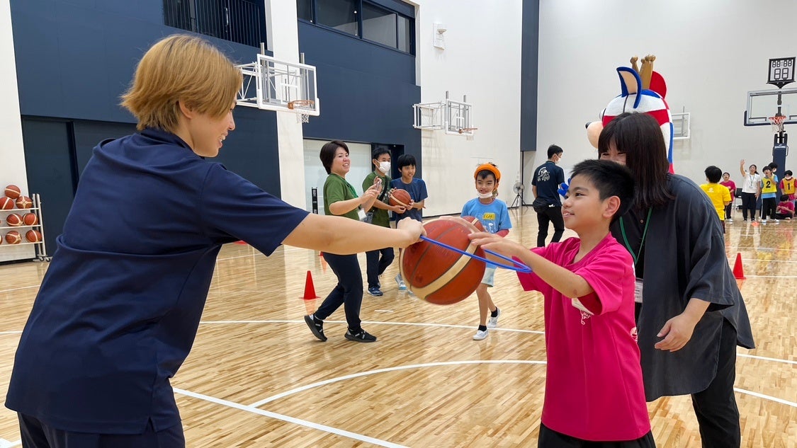 交流会では、沖縄アリーナ株式会社と沖縄スポーツアカデミー株式会社の協力のもと、沖縄アリーナの施設見学を行った後、サブアリーナにてバスケスクールコーチによるボール遊びやドリブルシュート、ゴーディーとの交流や記念撮影などを行いました。沖縄アリーナの魅力と、体を動かすことやバスケットボールの楽しさを体験していただきました。