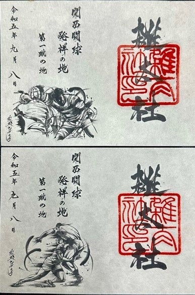 きっかけはラグビーワールドカップ2023の開催を契機に日本らしいラグビー文化の発信をテーマにスポーツと芸術のコラボ企画。ラグビー元日本代表主将の菊谷崇氏と世界的墨絵アーティスト茂本ヒデキチ氏の監修、作画のよる「ラグビー御朱印」が奉製された。