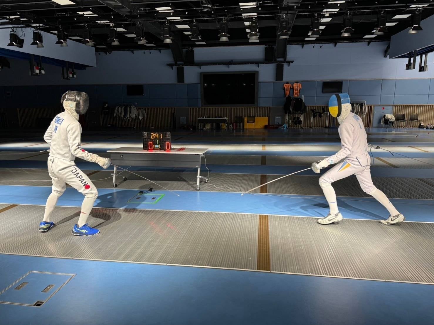 ウクライナ選手団は、国際情勢等により練習環境に苦慮しているアスリートを支援するスポーツ庁の事業『令和5年度「ポスト・スポーツ・フォー・トゥモロー推進事業」(国際情勢に応じた海外アスリート等支援事業)』を受託しているJOC(日本オリンピック委員会)に申請中の事業で訪日し、12月16日〜24日までの9日間、世界最高峰の施設である味の素ナショナルトレーニングセンター・イーストのフェンシング場で日本代表と共に練習を行いました。