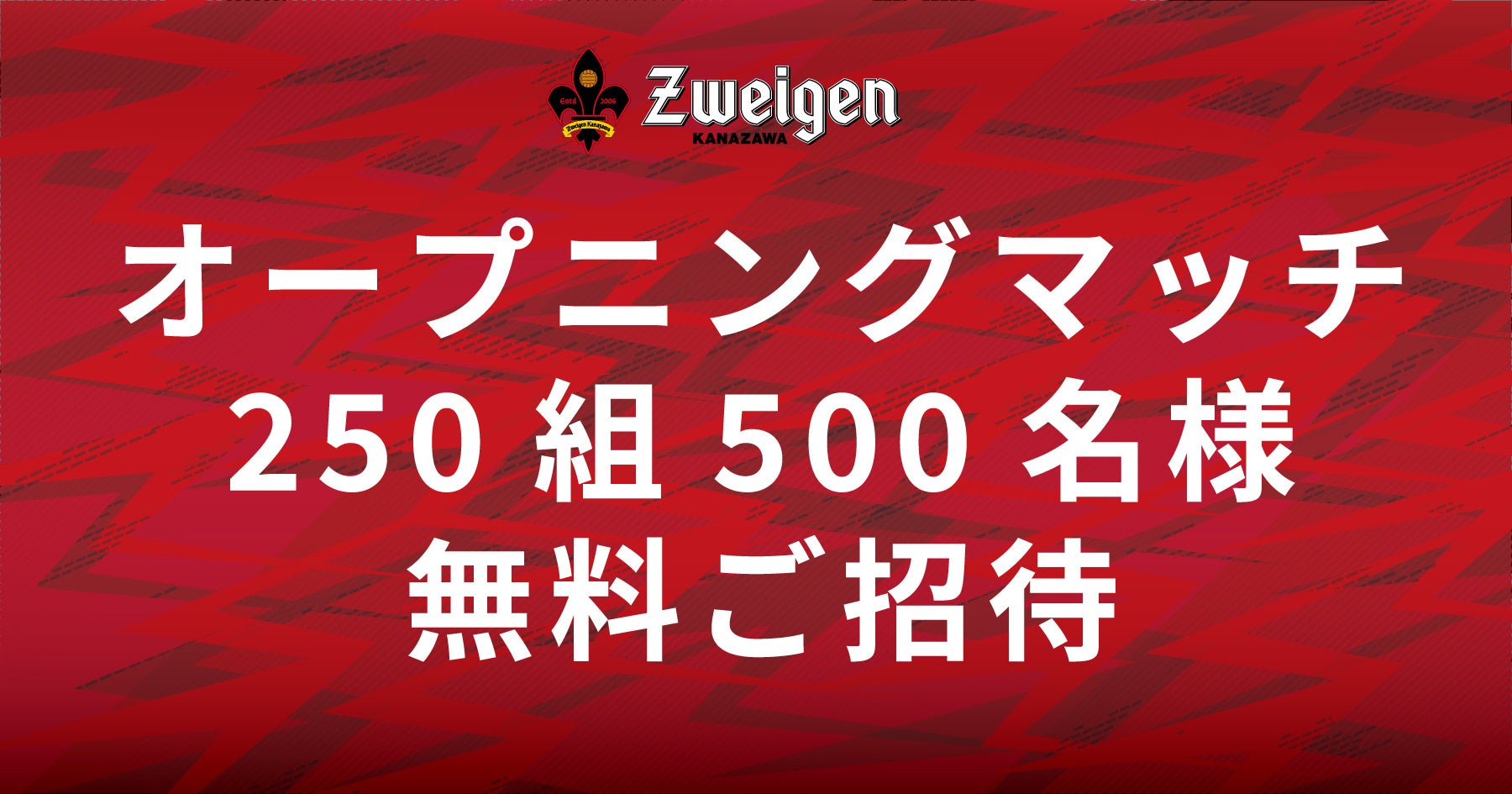 石川県在住の方を対象に、記念すべきオープニングマッチに無料でご招待いたします。申し込み締め切りは1月31日(水)までです。