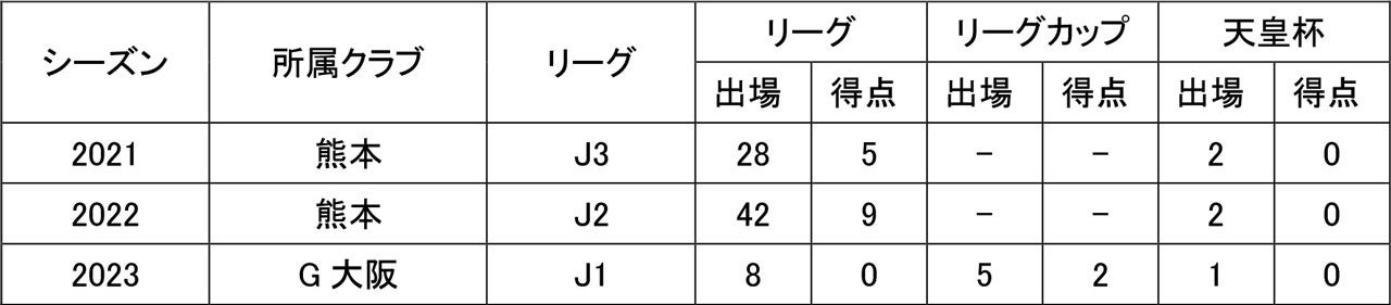 所属歴/折尾フットボールクラブ – アビスパ福岡U-15 – 大津高 – 順天堂大 – ロアッソ熊本 – ガンバ大阪