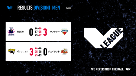 バレーボール国内最高峰リーグ V.LEAGUE【12月29日の試合結果】