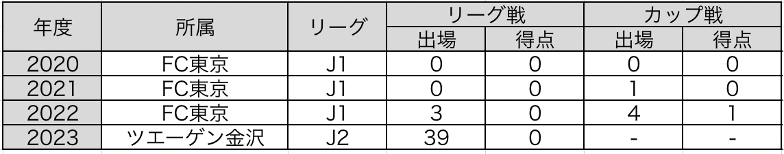 FCトリプレッタ渋谷 – FC東京U-15深川 -FC東京U-18 – FC東京 – ツエーゲン金沢(育成型期限付き)