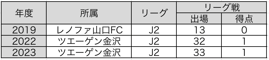 聖隷JFC – ジュビロ磐田U-18 – 流通経済大学 – 流経大ドラゴンズ龍ヶ崎 – レノファ山口FC – UDオリヴェイレンセ(ポルトガル) – ツエーゲン金沢