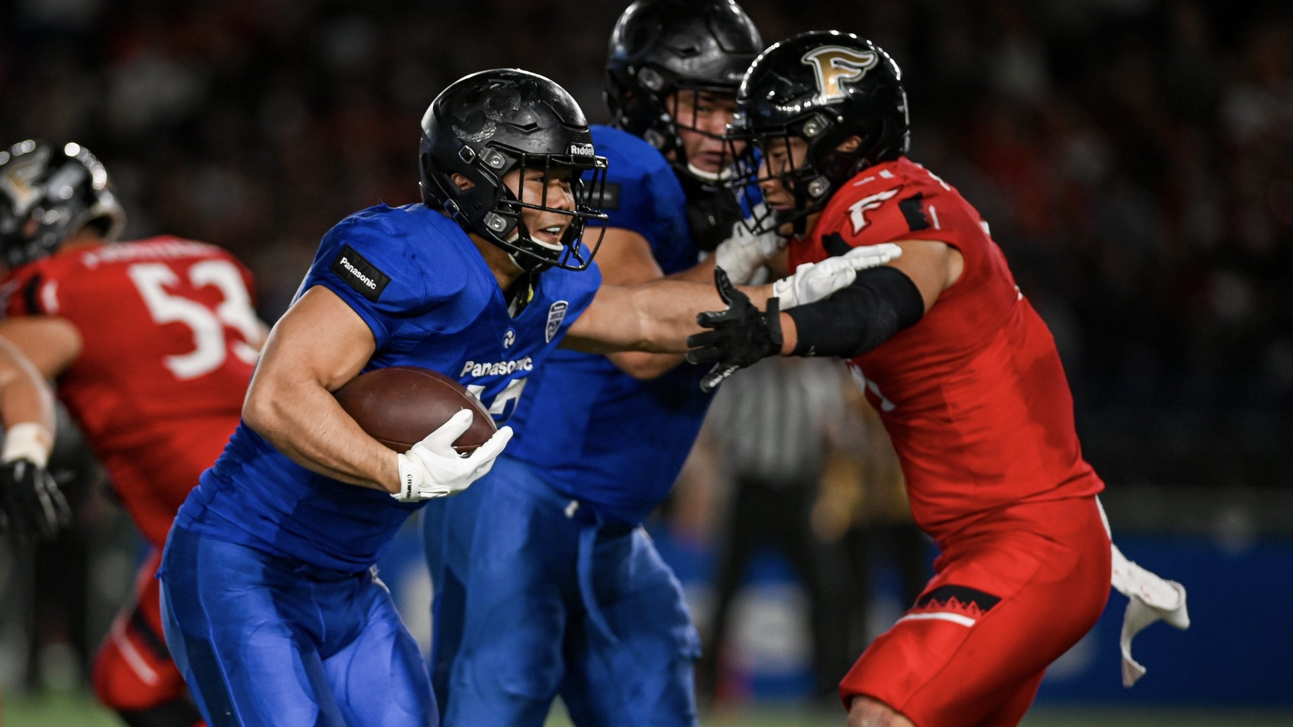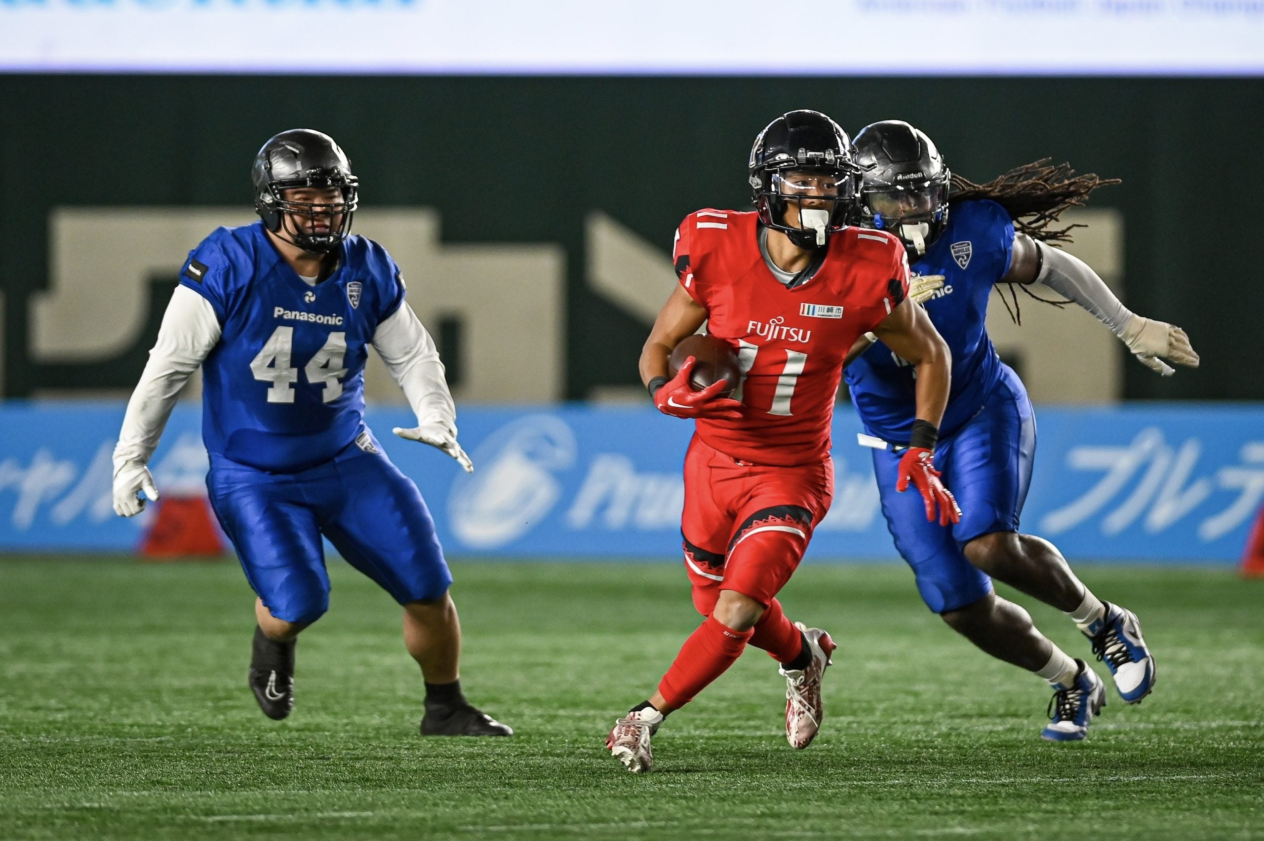 そして迎えた試合残り1分58秒からのパナソニックのファイナルドライブ。富士通は自陣まで攻め込まれるが、パナソニックの最後の望みをかけたフォースダウンギャンブルを、ラインバッカー(LB)山岸明生が鋭い出足でプレッシャーをかけてがっちりストップ。タイムアウトが残っていないパナソニックを尻目に、最後はウイニングフォーメーションを組んで試合終了のホイッスルを聞いた。