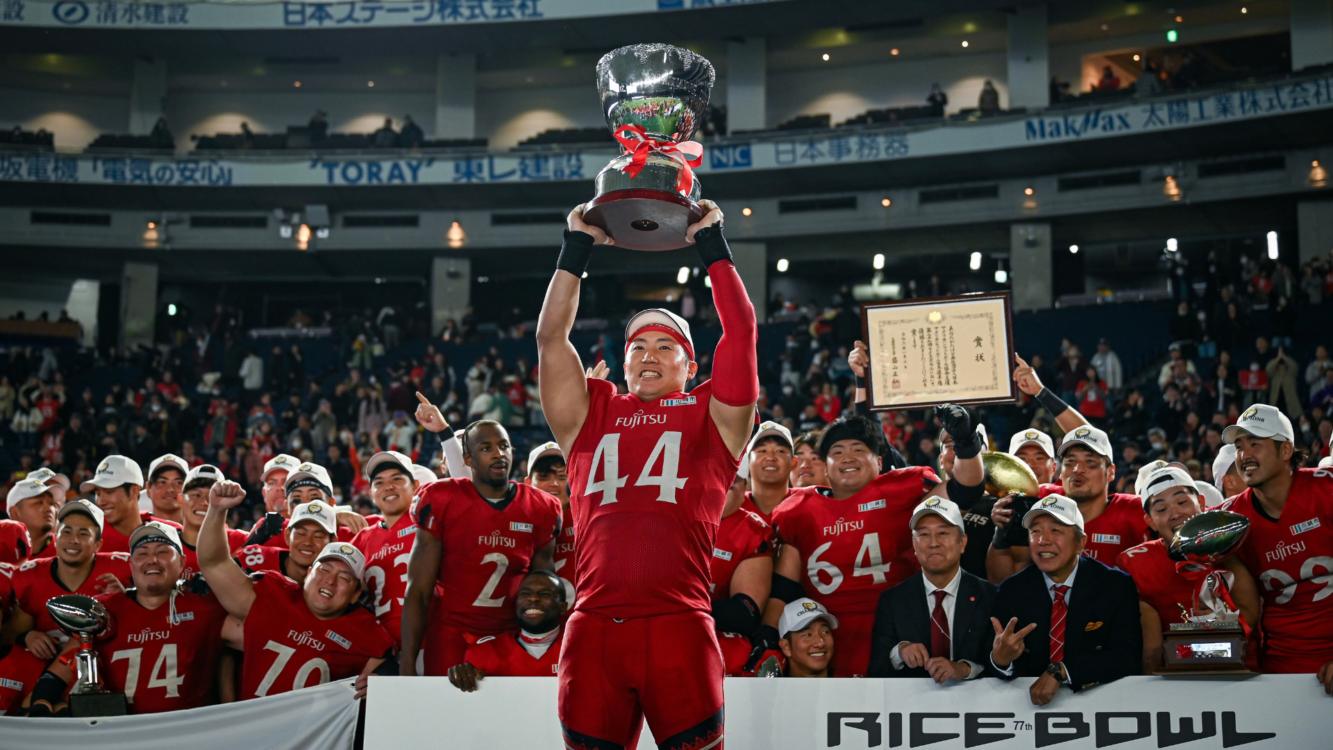 パナソニック インパルスと富士通フロンティアーズによるアメリカンフットボール日本選手権プルデンシャル生命杯第77回ライスボウルが1月3日、東京ドームで行われた。3年連続の同一カードとなった頂上決戦は、富士通が16対10で勝利してライスボウル3連覇を飾った。富士通は8度目の日本一の座に就いた。