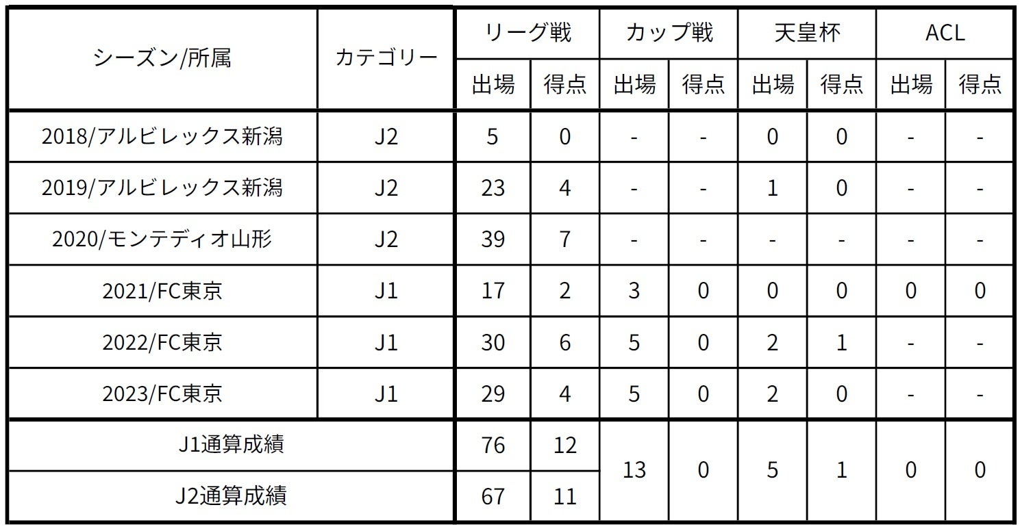 □出場記録(2023シーズン終了時点/国内クラブ所属時のみ)