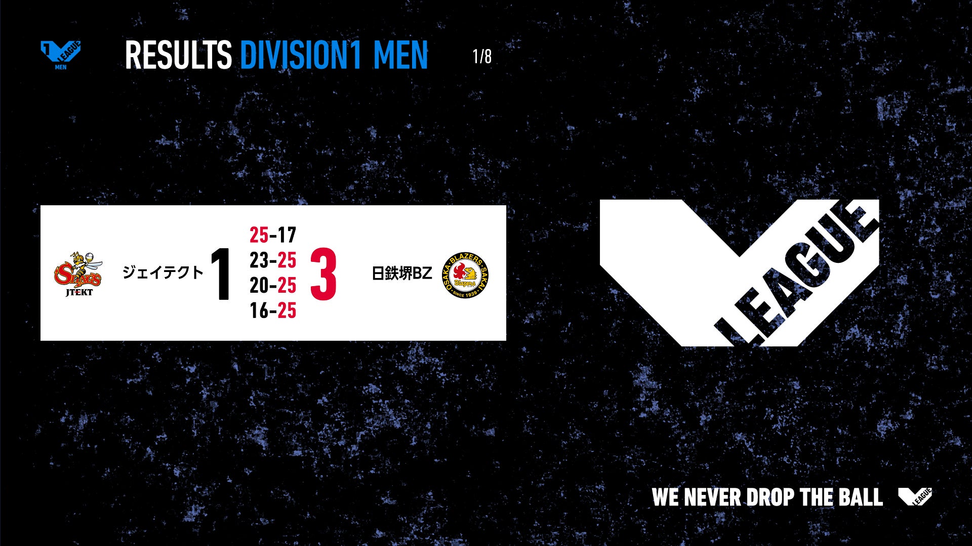 バレーボール国内最高峰リーグ V.LEAGUE【1月8日の試合結果】