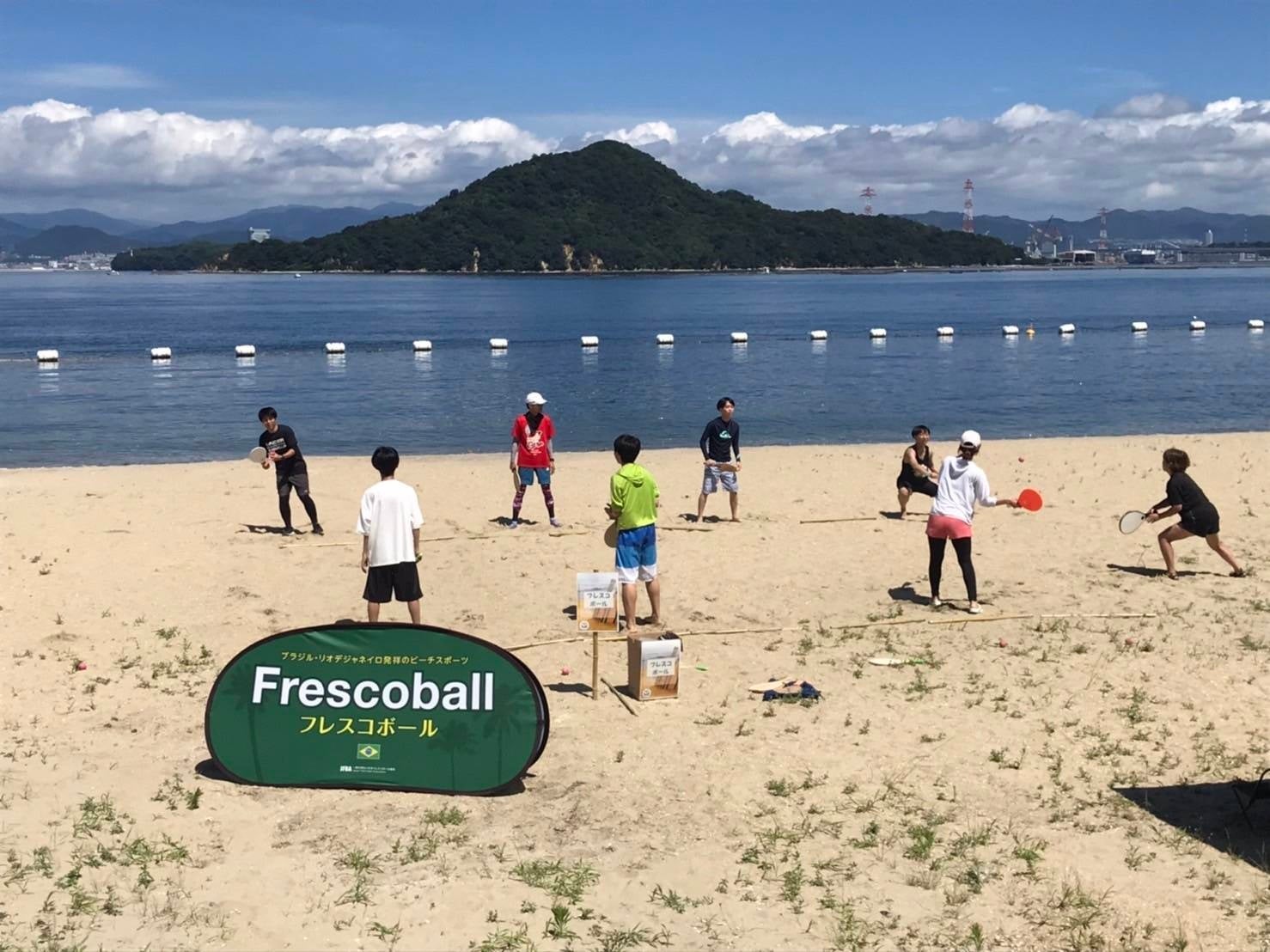中国地方では、昨年4月に初めて岡山県渋川海岸でJFBA公式戦を開催するなど、今後のさらなる普及が期待されるエリア。特に広島フレスコボールクラブの主要活動拠点である「ベイサイドビーチ坂」は、穏やかな瀬戸内海に面し、フレスコボールを楽しむには絶好の自然環境が整います。