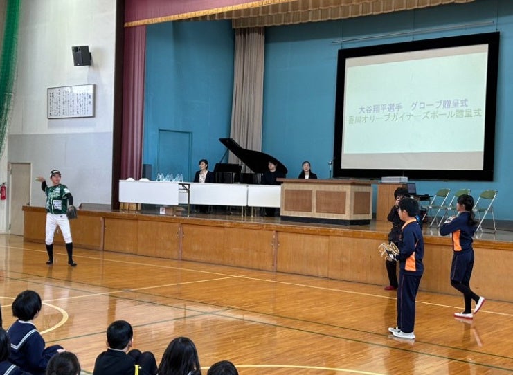 香川オリーブガイナーズ球団株式会社は、香川県内全小学校への野球ボール寄贈プロジェクトにおいて、2024年1月9日(火)に高松市立花園小学校にて寄贈式を執り行った。