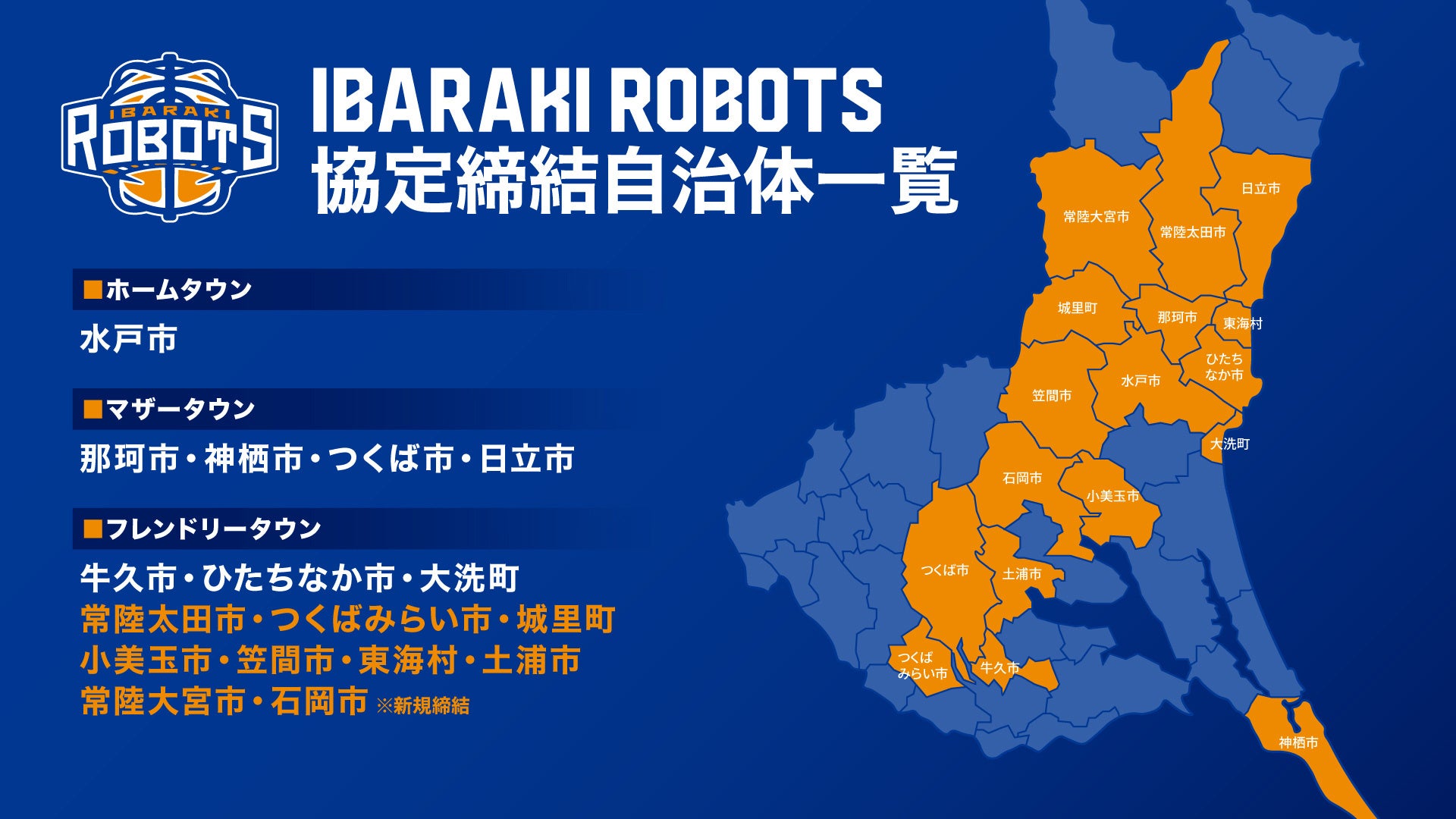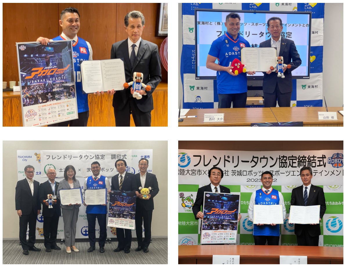茨城ロボッツはこれまでに水戸市とのホームタウン協定の他、茨城県内7市町村と同様の協定を結んでおります。 今後も各自治体との連携を深め、地域活性化、地域課題解決に向けた取り組みを進めてまいります。