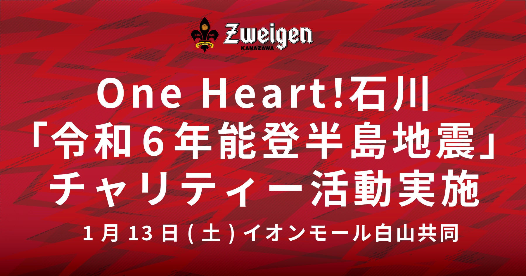 私どもツエーゲン金沢は、これまで石川県民の皆様に支えられてこれまでの歴史を積み上げてくることができました。私達のホームタウン・石川県を襲った未曽有の大震災に対して、県内行政・企業・団体・市民の皆様と力を合わせてこの困難を乗り越えるべく「OneHeart!石川」をスローガンに、復興支援活動に取り組んでいく所存です。