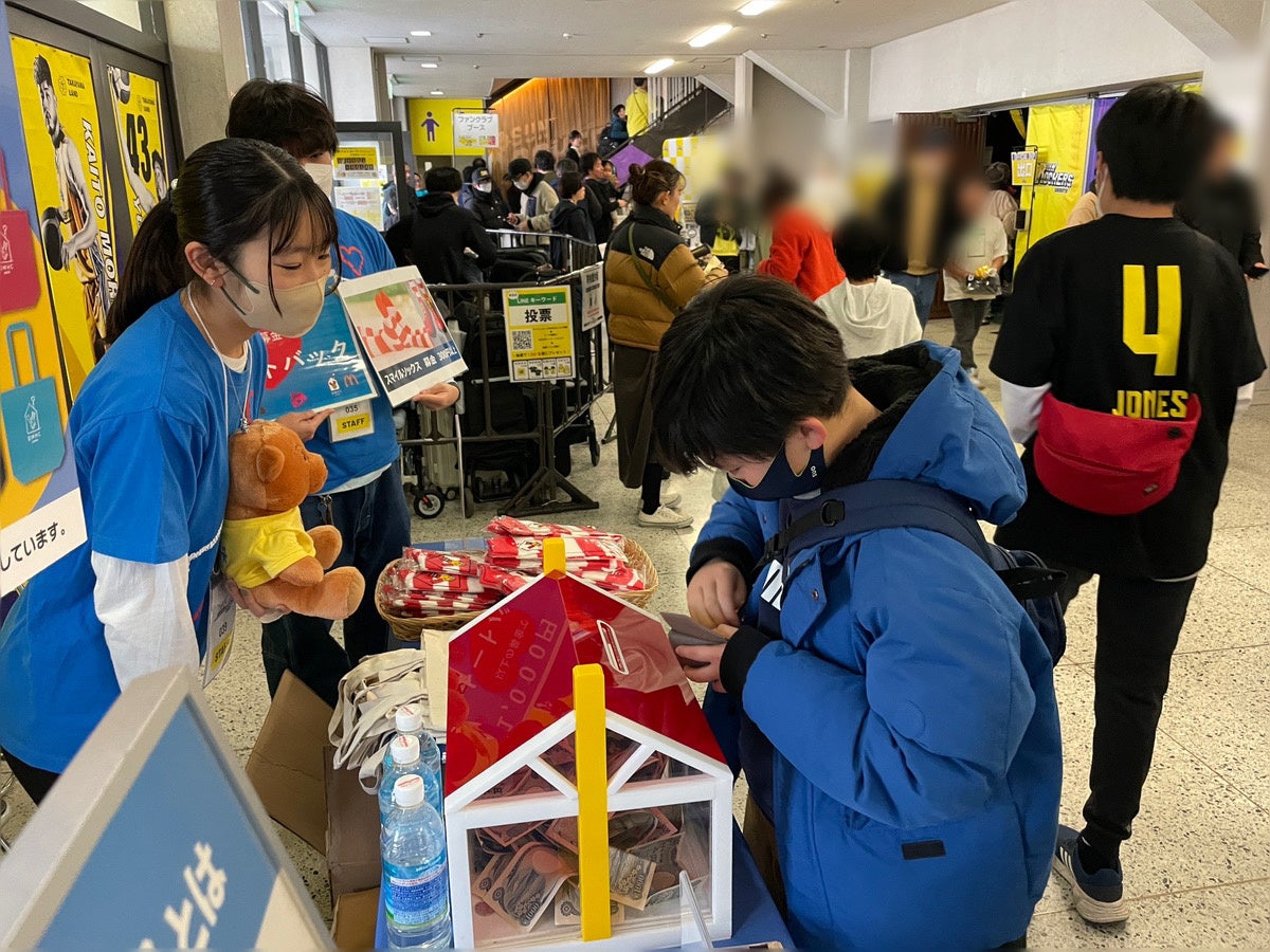 募金活動にはサンディー、サンロッカーガールズが参加し、多くのファンの皆さんへ募金への協力をお願いしました。