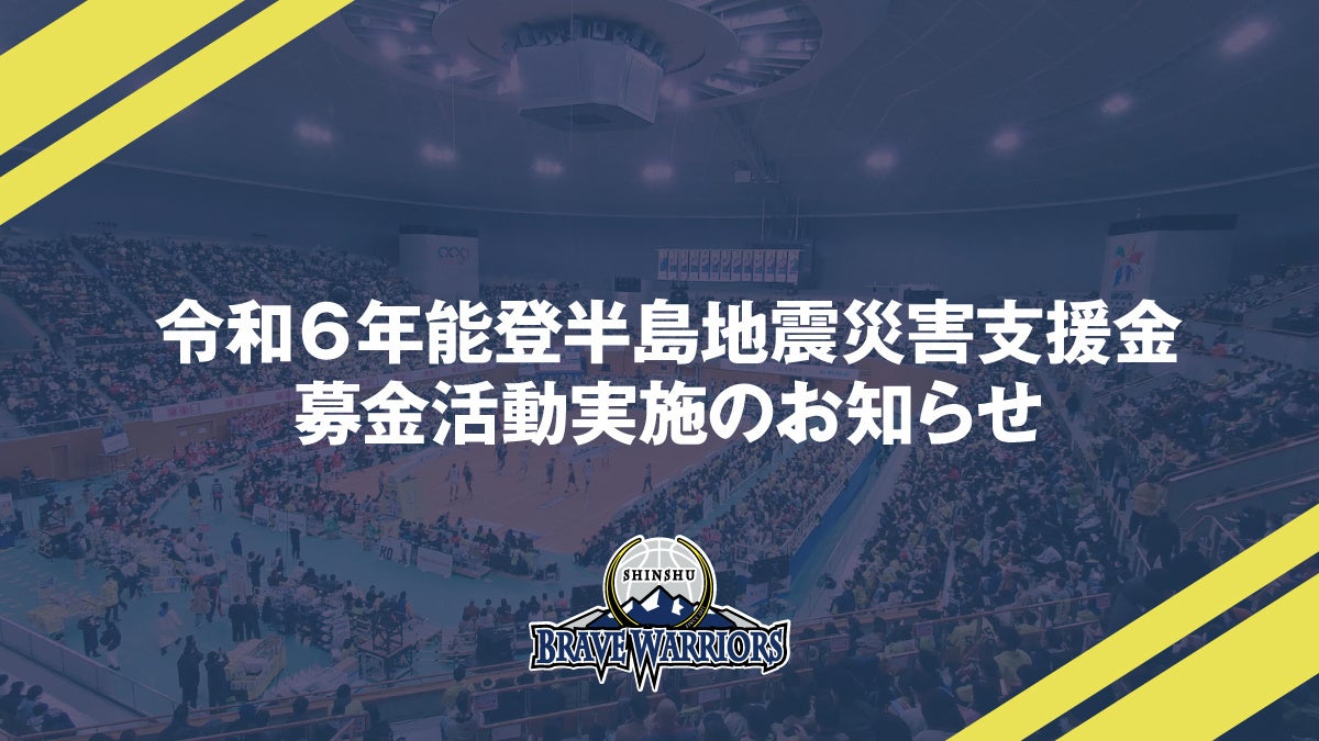 信州ブレイブウォリアーズでは、今回の災害において被災された皆さまを支援し、一刻も早い復興を祈念するため、下記日程の試合会場において募金活動を実施することとなりましたのでお知らせいたします。