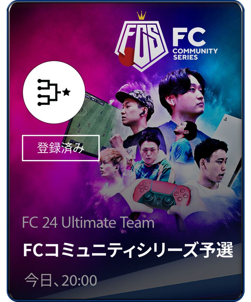 『FCコミュニティシリーズ』は、世界で最も人気のサッカーゲーム『EA SPORTS™ FCシリーズ』を用いた日本国内向けの大会シリーズブランドです。EA SPORTS™社主催のeスポーツ世界大会『FIFAグローバルシリーズ(現『FC Pro』)』および国際サッカー連盟主催の『FIFAeシリーズ』はこの数年で急速に発展しているものの、オンライン開催を中心としたアジア大会にて継続的に高いパフォーマンスを発揮したトップレベルの上位数選手のみが出場可能なイベントに留まっており、日本国内にて選手が経験を積み成長し、世界大会への参加や優勝を狙うまで接続することのできるイベントはこれまで存在しませんでした。FCSはこの課題に対応し、2023年より定期的な大会を誕生させています。