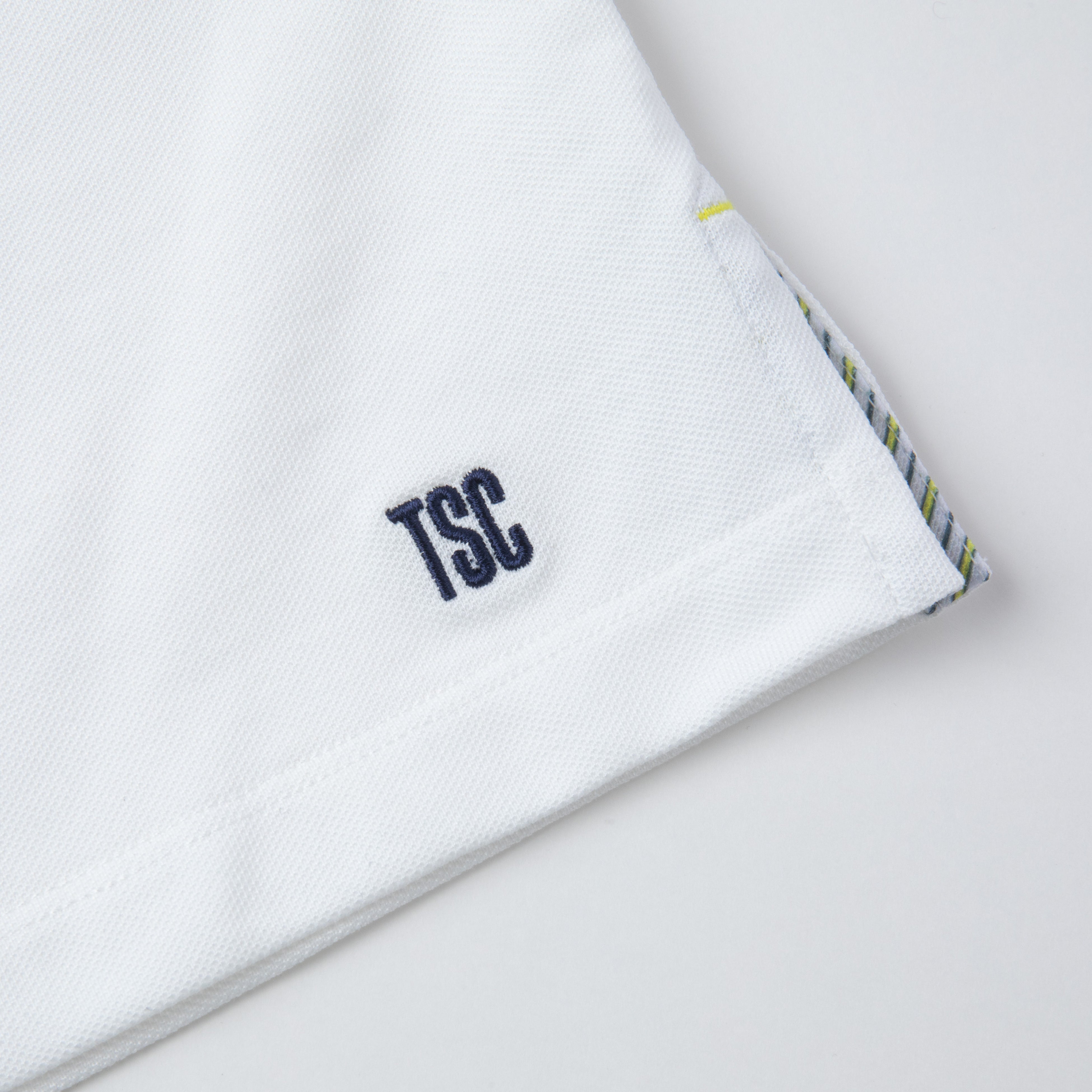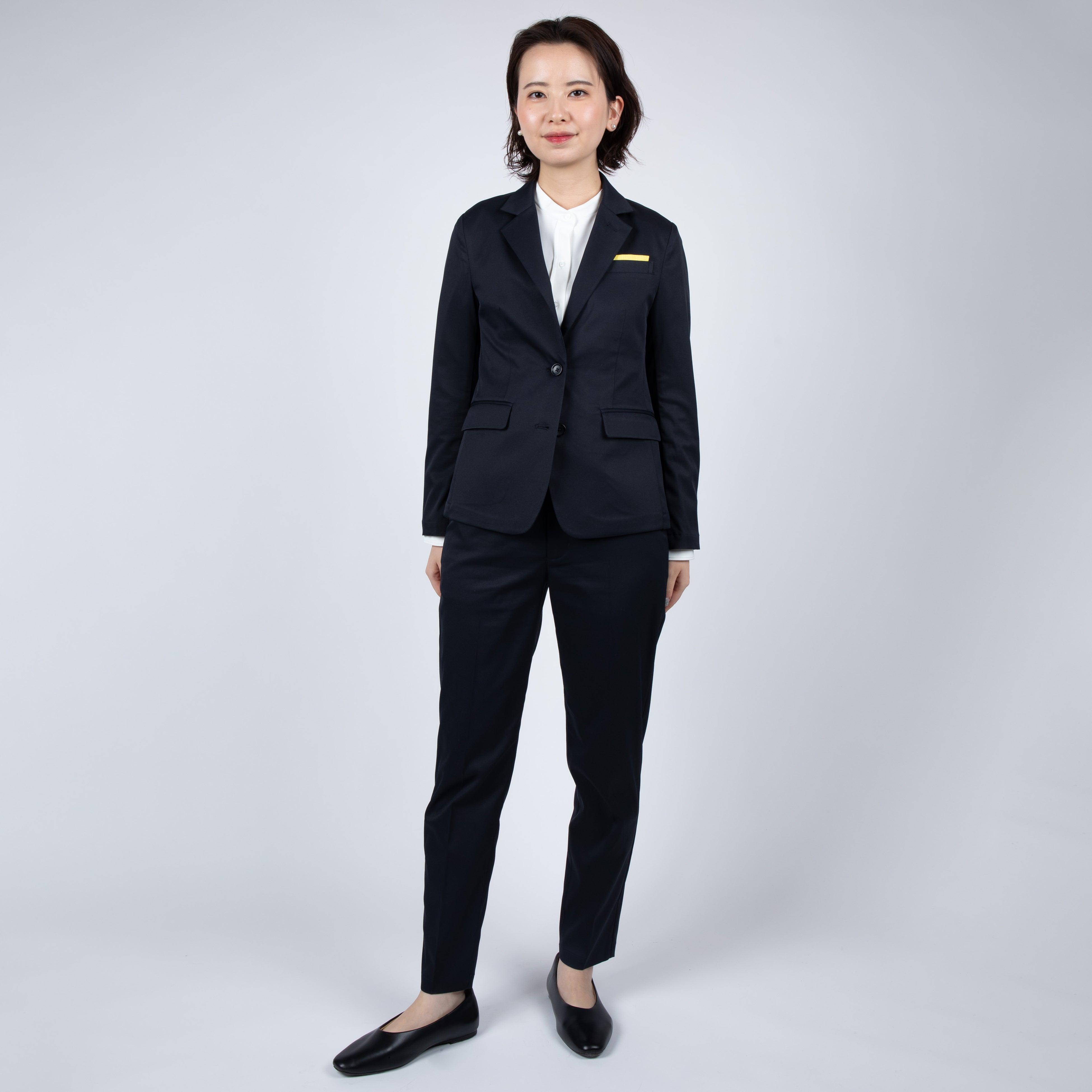 特徴:栃木SCのチームカラーのイエローをアクセントカラーに使用。胸ポケットのフェイクチーフやパイピングに、勝運祈願の意味を持つイエローと白の千鳥柄を採用しました。左内ポケットに栃木SCのフィロソフィー「KEEP MOVING FORWARD」をプリント。パンツは、サイドポケットの横にファスナーポケットを完備し、収納力を高めました。センターライン入りで、裾はダブル仕上げです。ユニセックスで着用できるポロシャツは、襟の開きが広いホリゾンタルカラーを採用。栃木SCの頭文字「TSC」の刺繍入りで、ビジネスシーンでも着用できるシンプルなデザインに仕上げました。