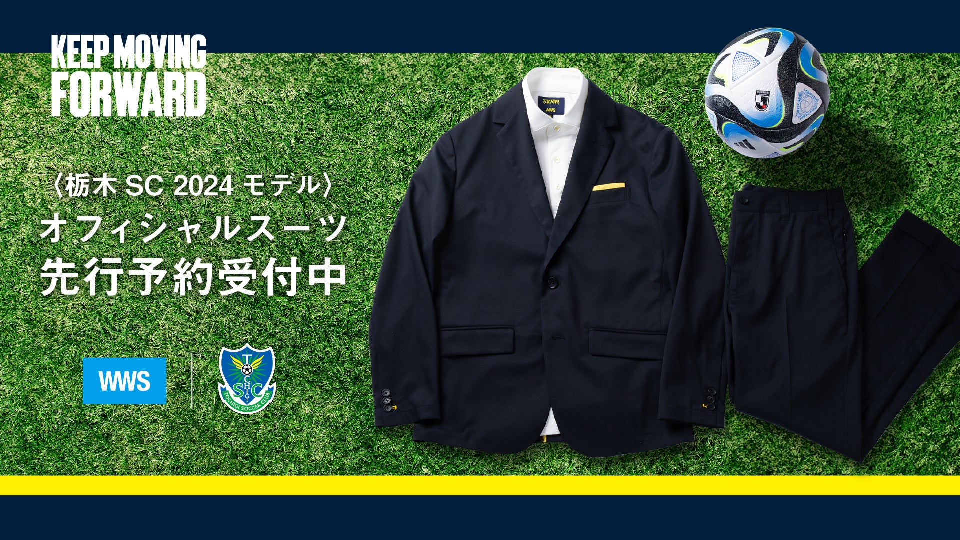 2024シーズンより、栃木SCの選手が着用するオフィシャルスーツとして、新たに2社コラボモデル「WWS×栃木SC オフィシャルスーツ」を製作しました。同モデルはメンズ用・レディース用共に、2024年1月14日(日)20:00よりWWS公式オンラインストアにて先行予約を開始いたします。