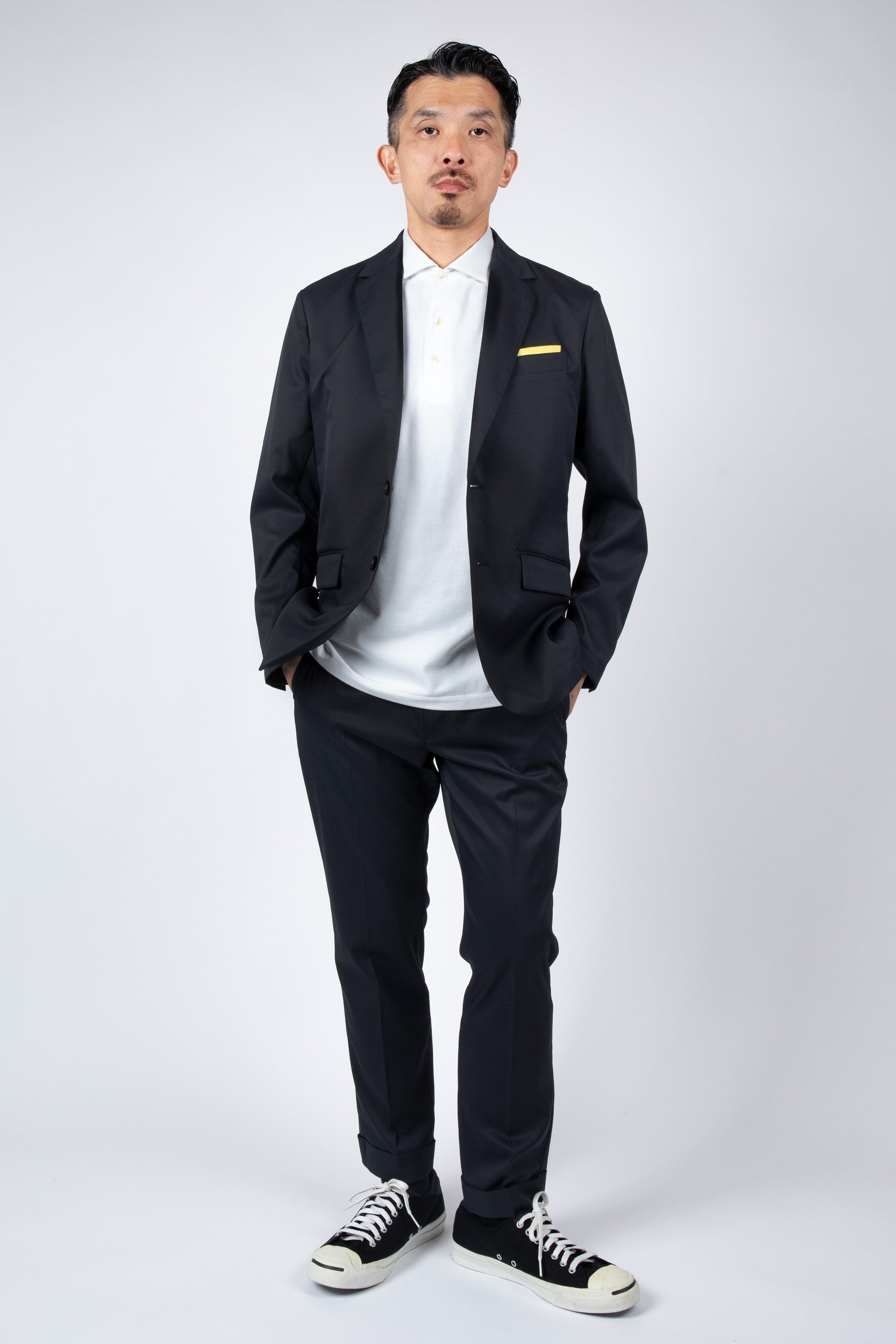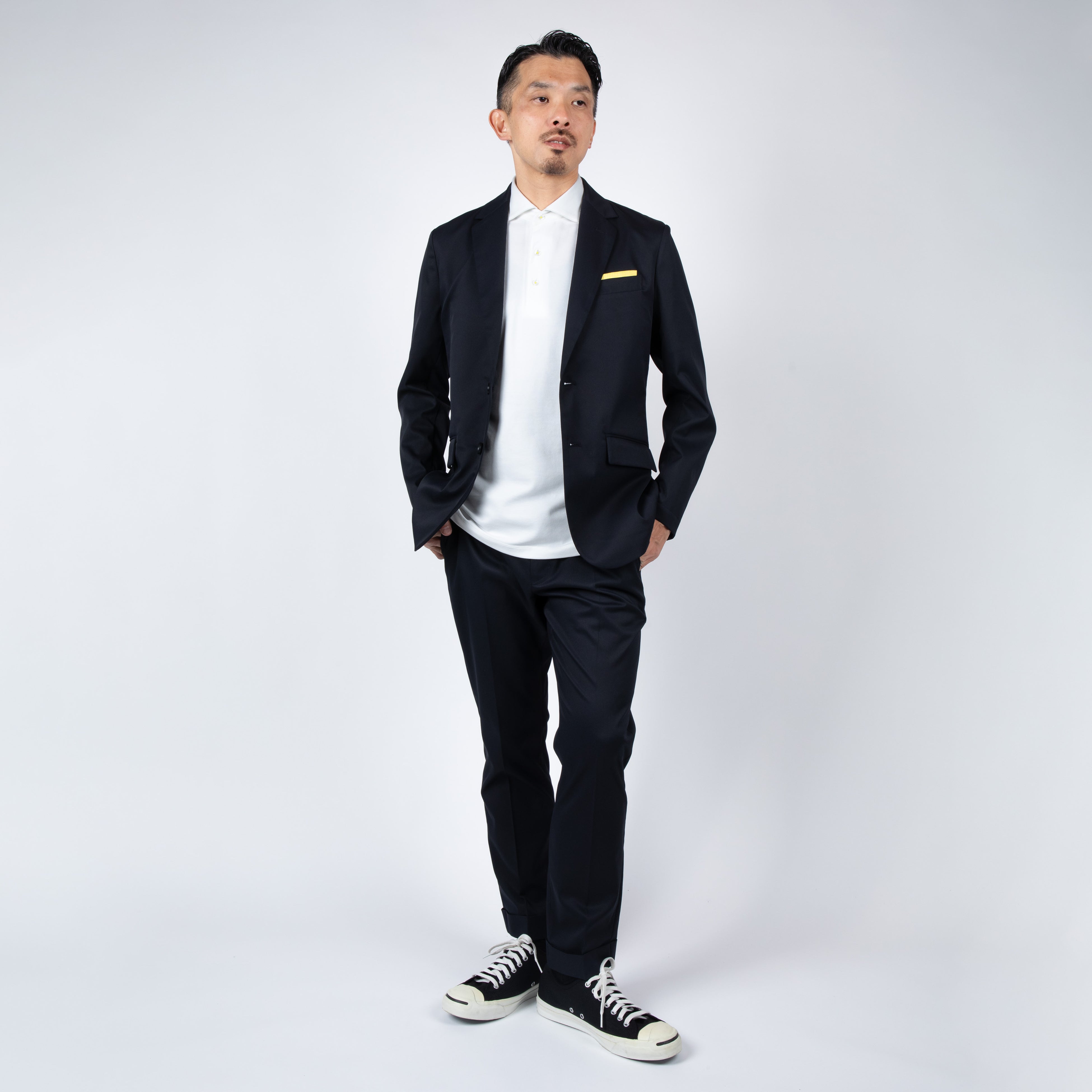 カラー:(ジャケット・パンツ)ダークネイビー/(ポロシャツ)ホワイト