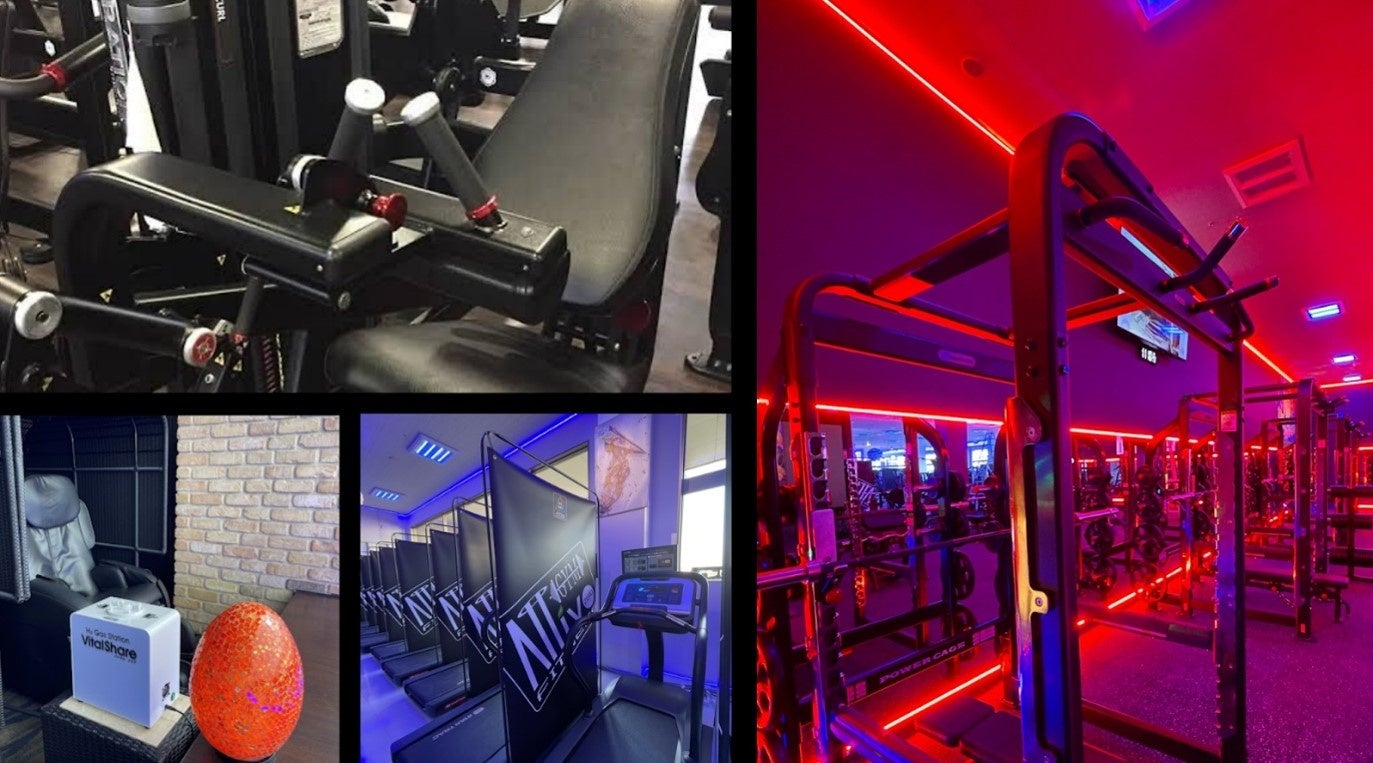 ジム内の照明をアルバブルーにし、マシンの間にパーテーションを設置することで人目を気にせず利用できます。