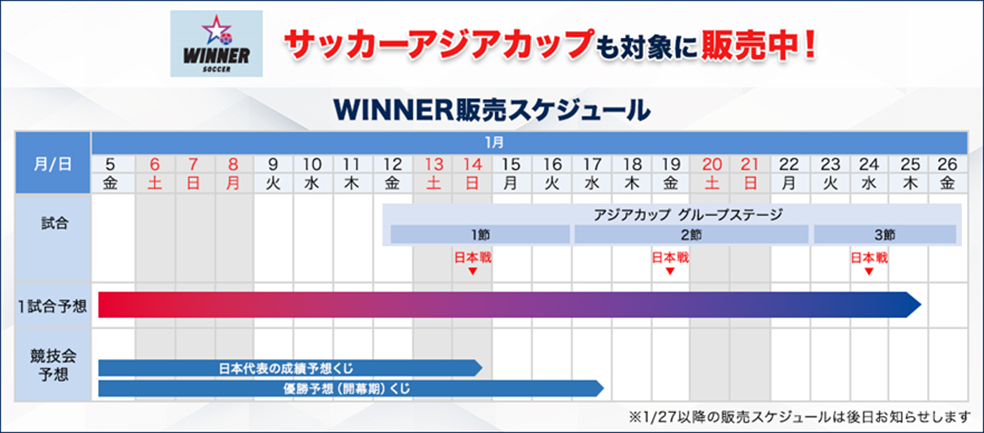 サッカーアジアカップを対象とした「WINNER」の販売予定