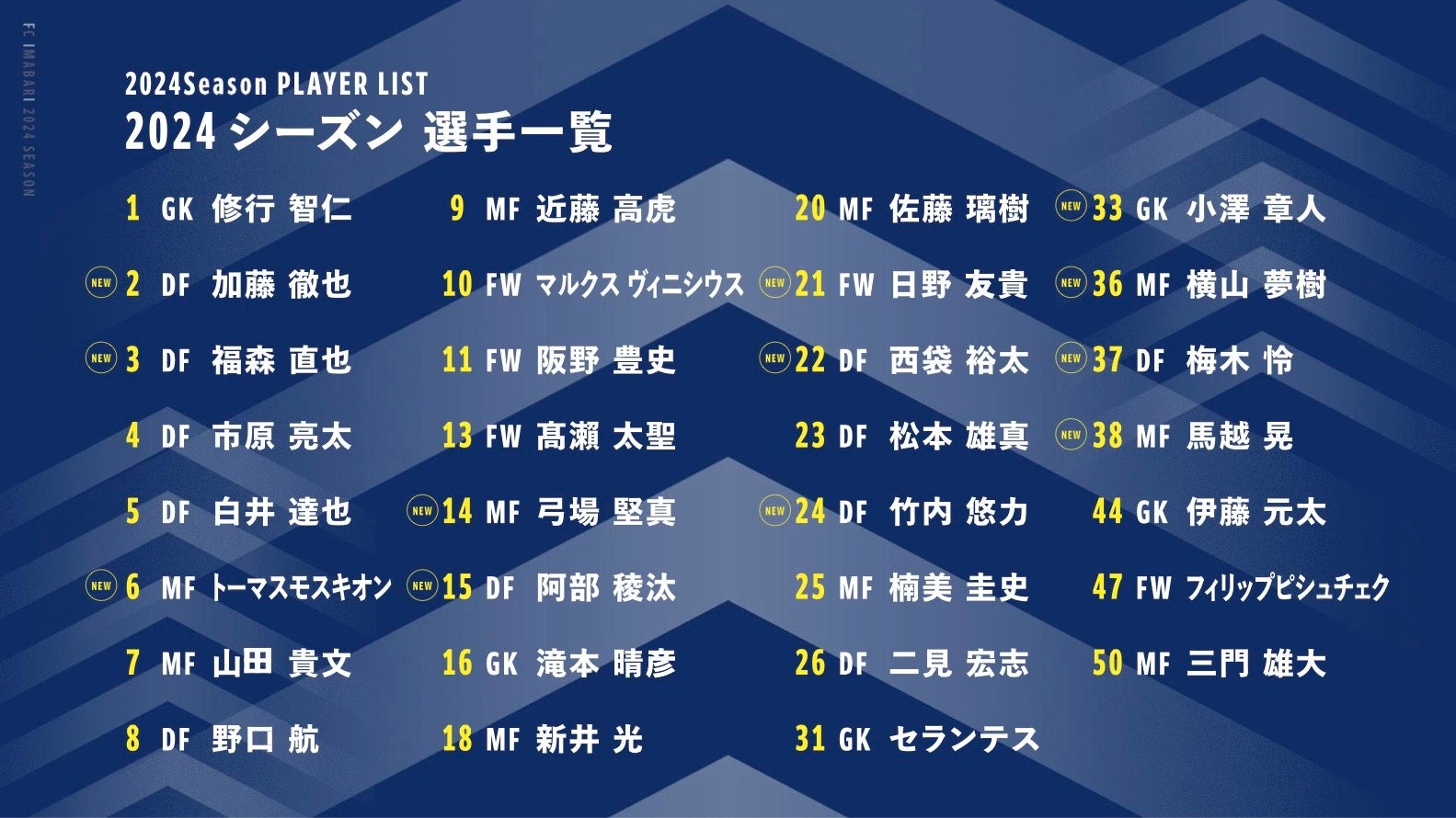 トップチームのスタッフ体制、2024シーズンの背番号を発表。新加入選手12名を加え、J2昇格を目指します!
