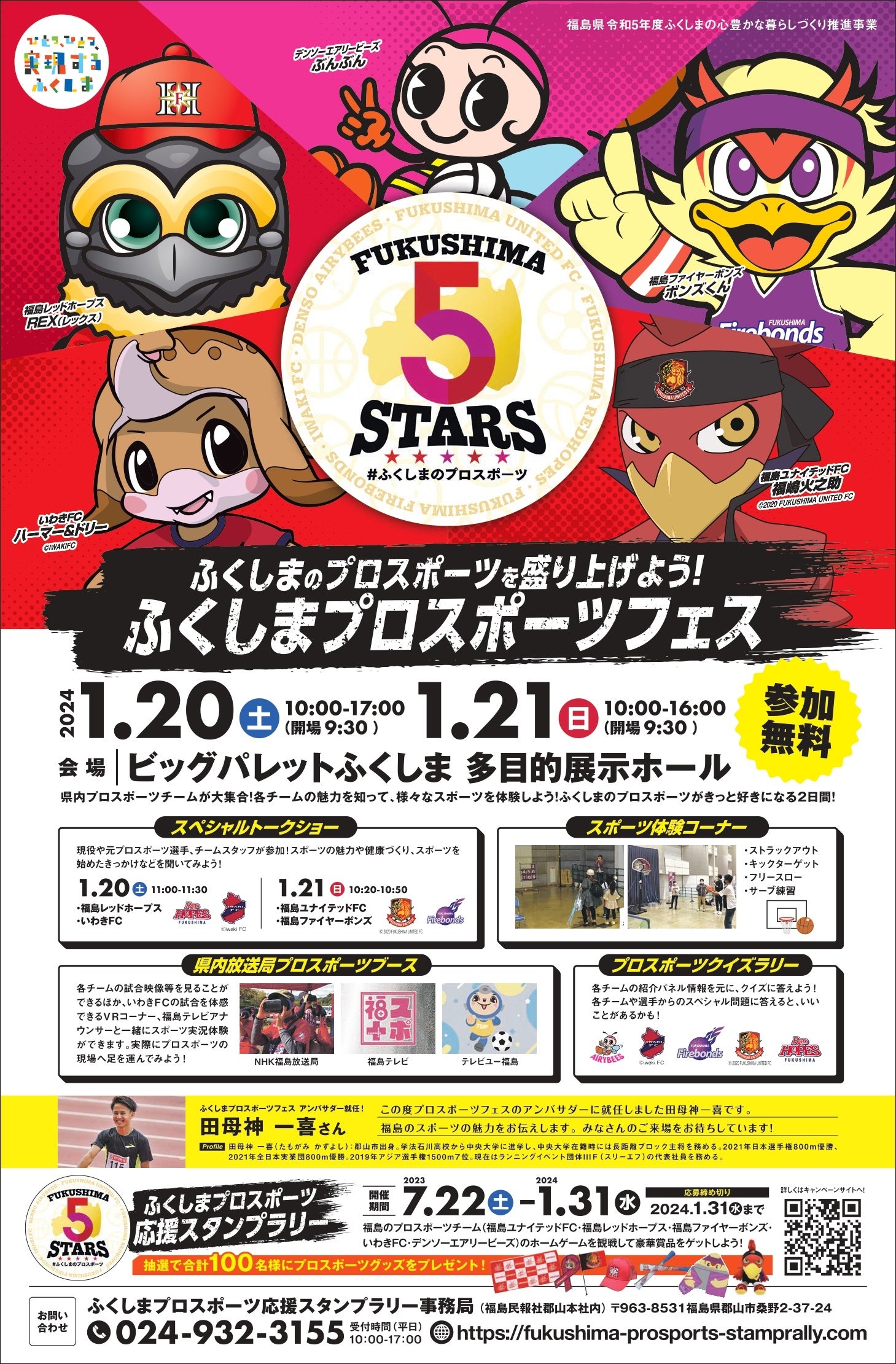 福島県は、1月20、21の両日、郡山市のビッグパレットふくしまで「ふくしまプロスポーツフェス」を開きます。プロスポーツチームの応援の輪を広げる目的で、県内に拠点を置く5つのプロスポーツチームが県民との交流を深めます。参加料は無料です。