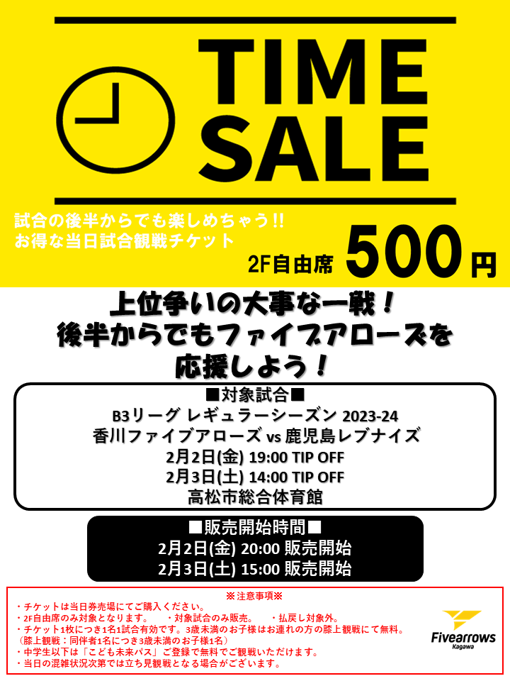 試合開始に間に合わない方にもご観戦いただけるよう2/2(金)3(土)のホームゲーム限定でお得な当日チケットをご用意いたしました。