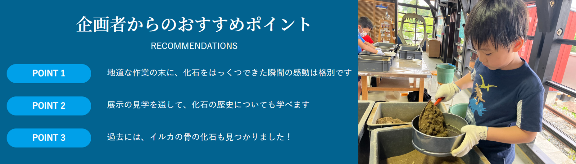 このように化石の発掘はお子さまにとってさまざまな発見があり、好奇心を刺激します。地道な作業の末に、化石の発掘ができた瞬間の感動は格別です。