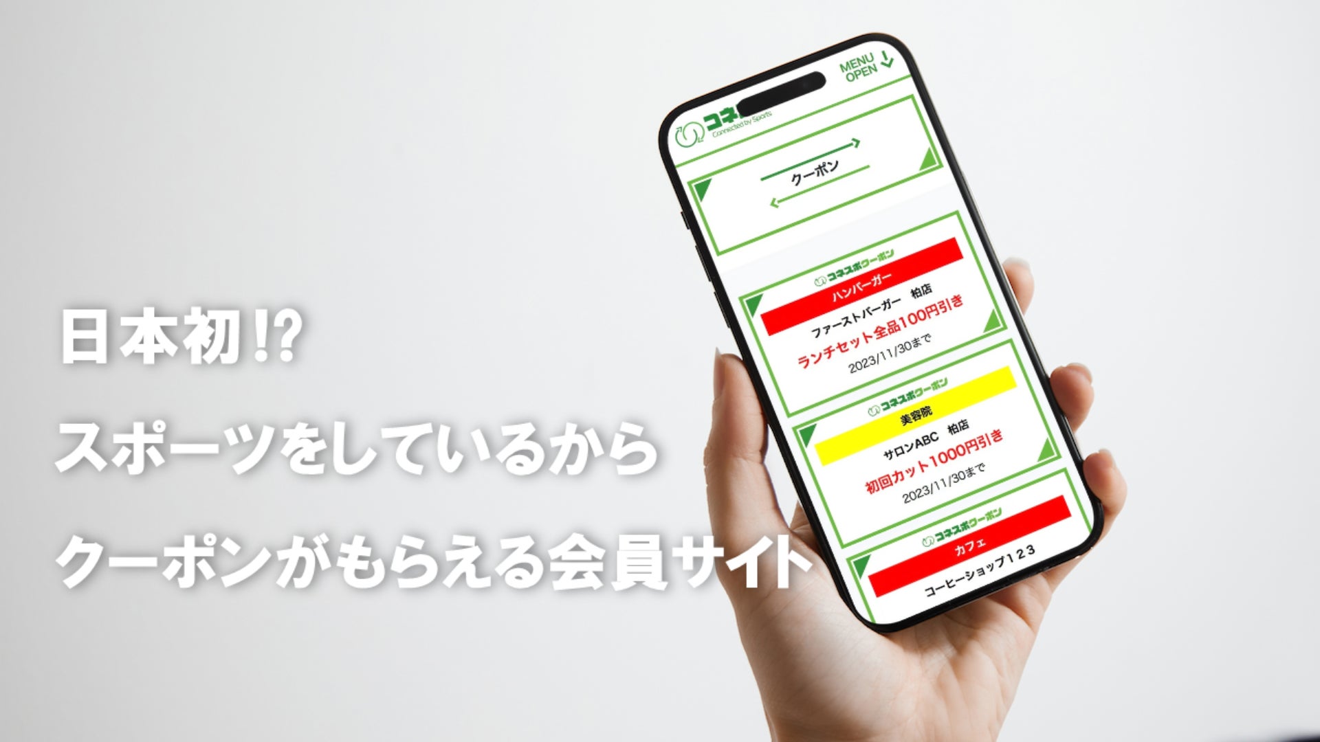 日常消費の負担を軽減することができる企業や事業者のクーポンをスポーツクラブの会員に毎月配布することで、スポーツをしている方々の生活を少しだけ豊かにするとともに、少しでもスポーツをしやすい環境を作っていきます。