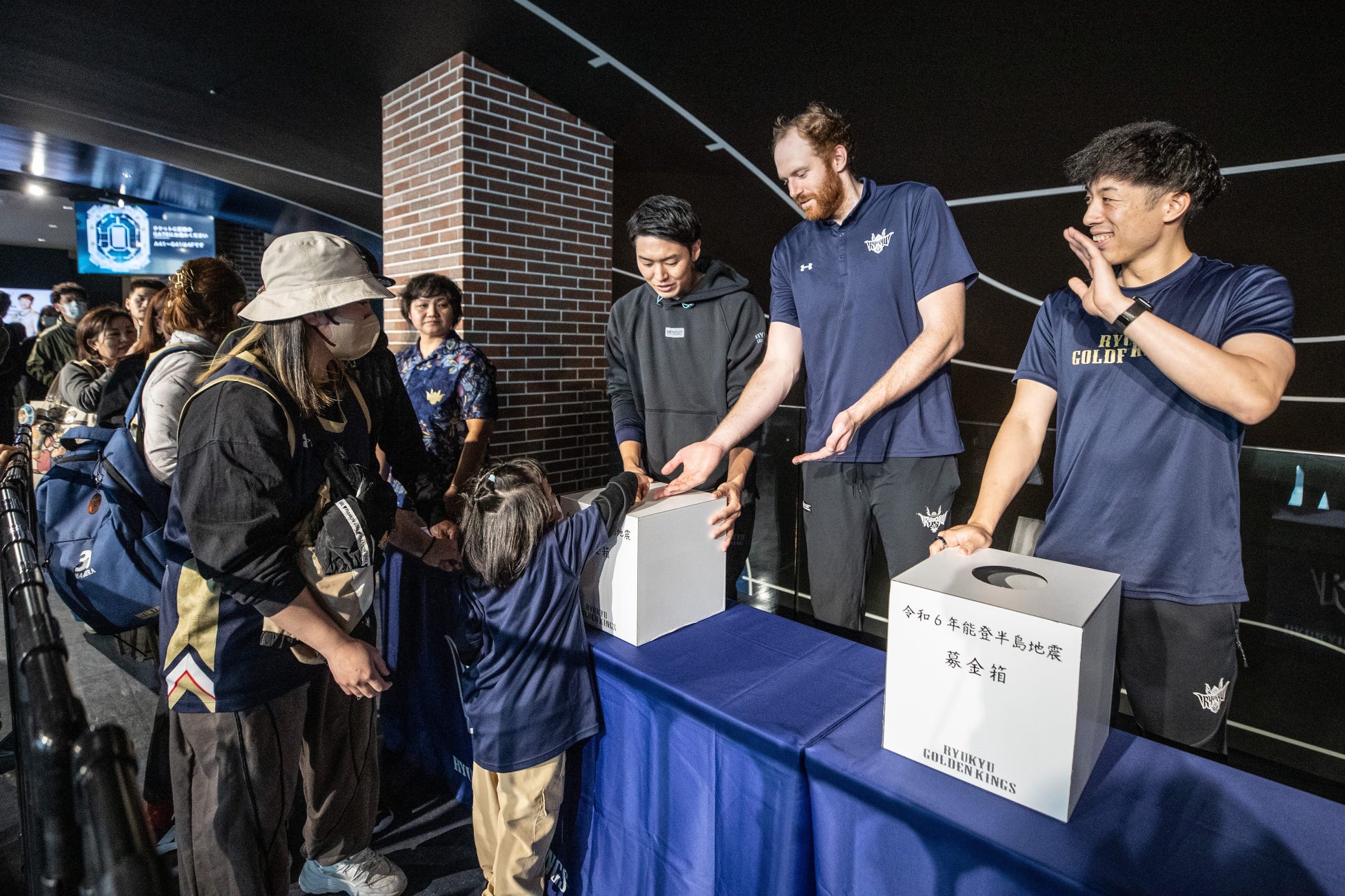 琉球ゴールデンキングスでは、1月20日(土),21日(日)のホームゲームにて、令和6年能登半島地震に対する募金活動を実施しました。