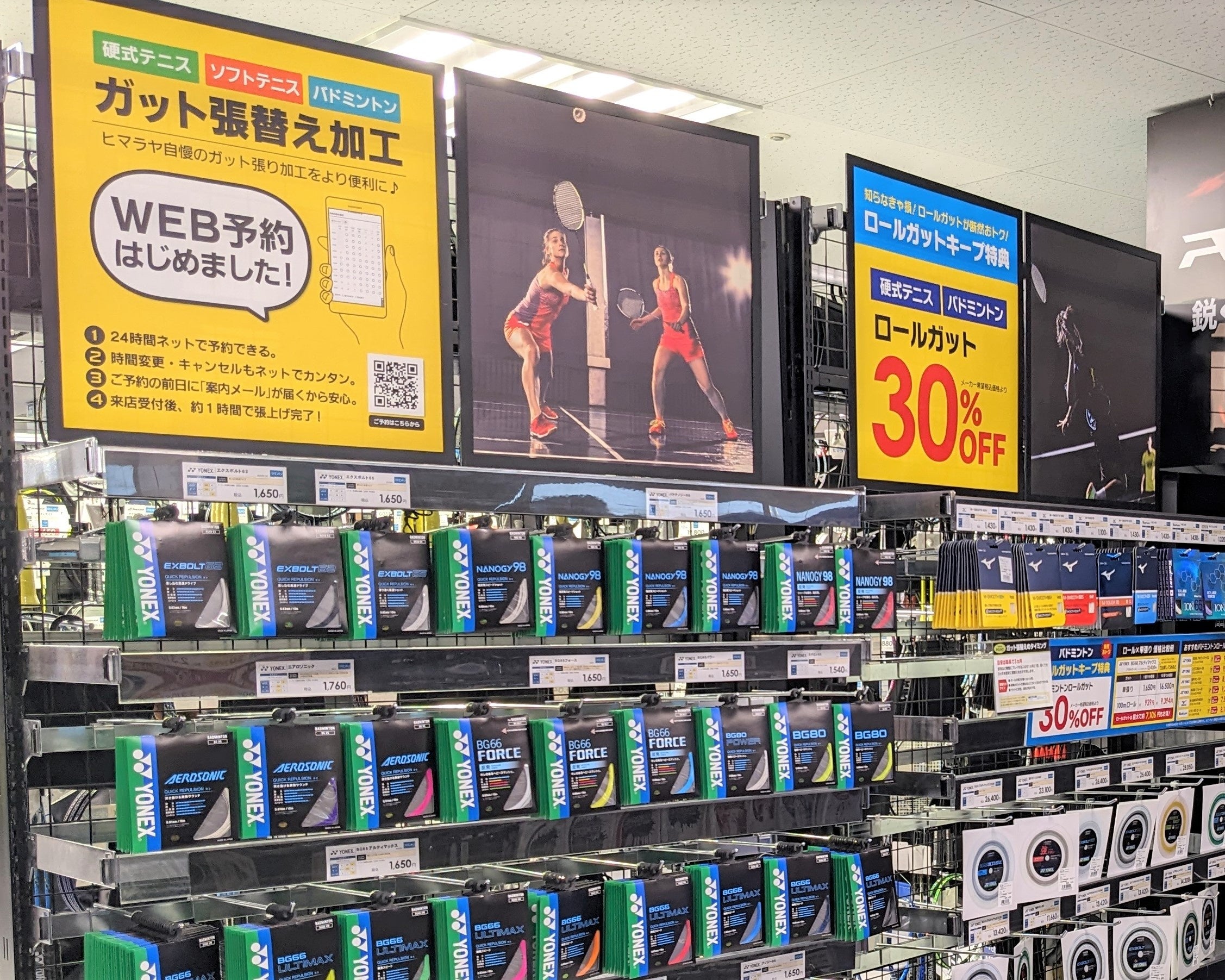 さらに、お手持ちのスマホから24時間いつでもガット張り加工の予約ができる「ガット張り加工WEB予約サービス」を提供。来店前に、「いつ加工が仕上がるか?」という、お客様の不安をスムーズに解消いたします。