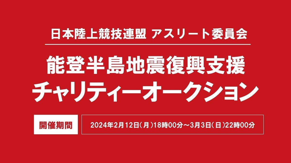日本陸上競技連盟アスリート委員会は、バリュエンスジャパン株式会社と連携し、能登半島地震復興支援のためのチャリティーオークションを開催いたします。
