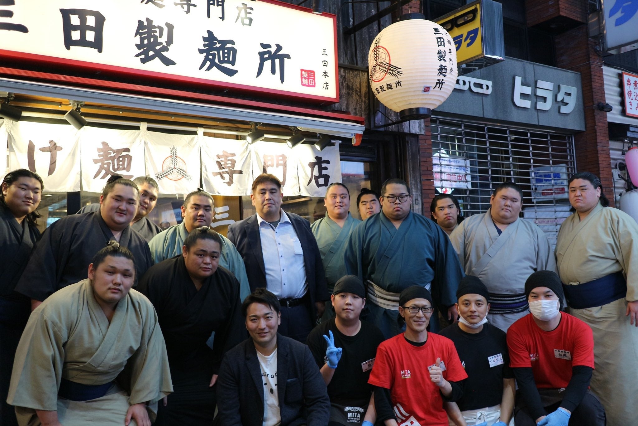 ■【三田製麺をすする力士】🍜全部のせ特濃つけ麺・たまごかけ麺・唐揚げ・鯛だし塩つけ麺