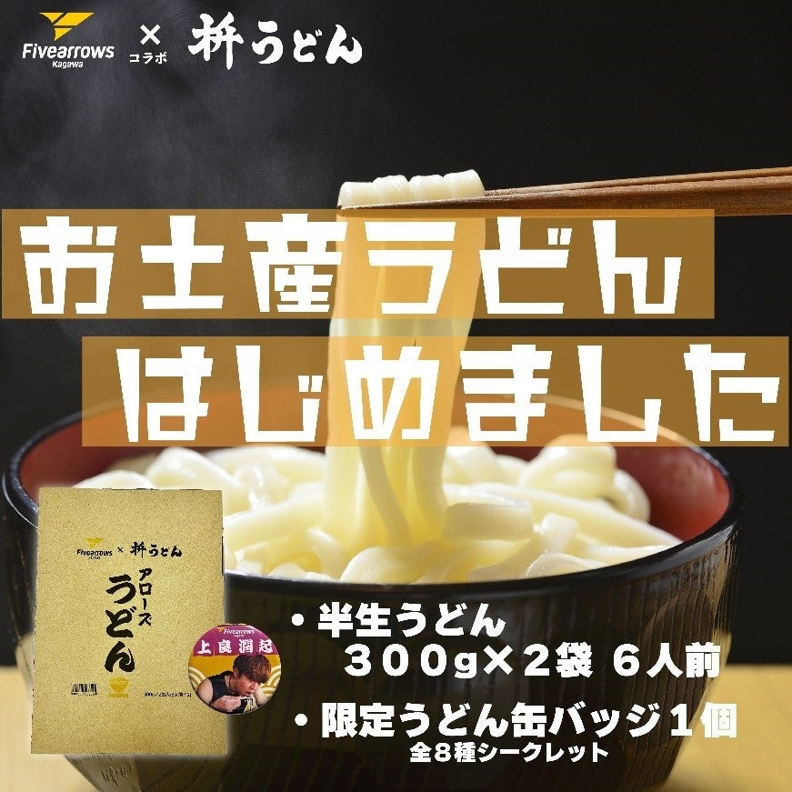 香川ファイブアローズでは選手やスタッフも通う香川のうどんの名店「枡うどん」とのコラボ商品「アローズうどん」を販売いたします。