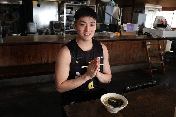 実際に選手がうどんを食べている風景を缶バッジにした、ここでしか手に入らない限定缶バッジ!