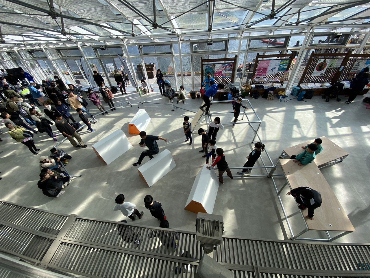 走る・跳ぶ・這う・滑る・登るなどの動きの中に、回る・転がる・乗る・ぶら下がる・体をふる・バランスを取るなども含まれます。目の前の場所を使って体を動かすので、視点を変えるたび動き方は無限に広がります。一直線に進んでも回り道をして進んでもOK。